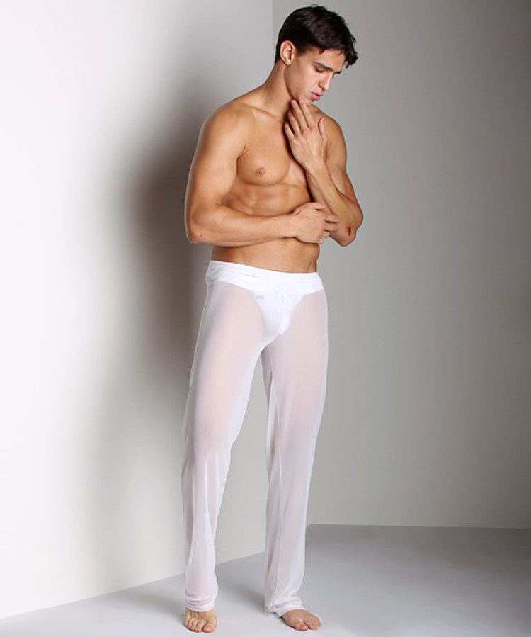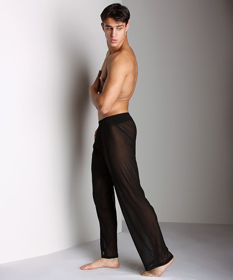 Сделанный на заказ новая коллекция мужской Свободный для отдыха Главная Сетка Брюки Спящие штаны Леггинсы Сексуальные низкая посадка Сплошная цветная сетка