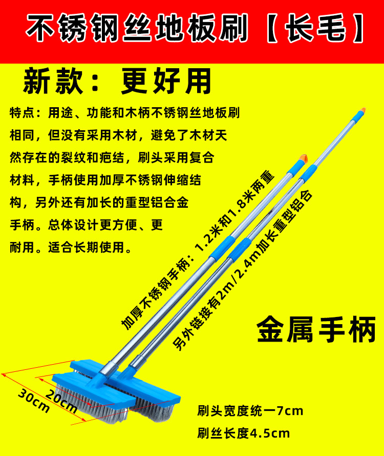 Длинная ручка из нержавеющей стали панель Щетка Щетка Щетки для волос Артефакт Дивизион Мосс Цементный пол Открытый двор рыбы Бассейн