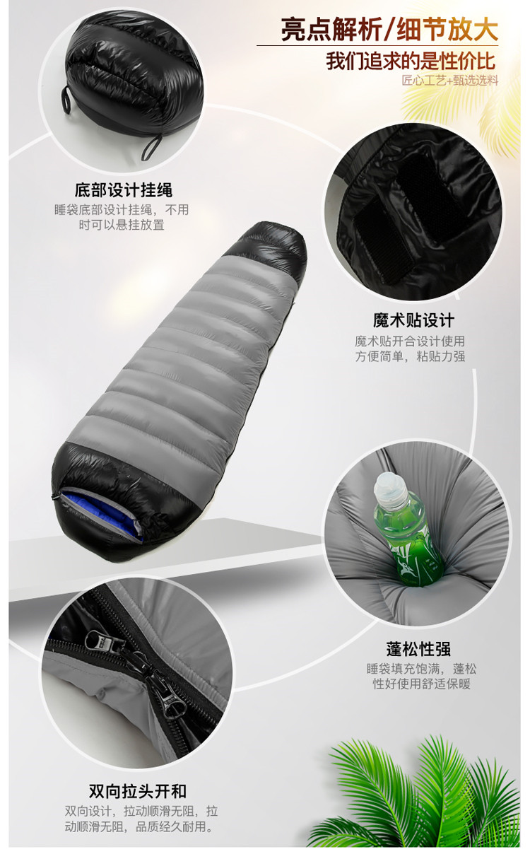 Plel Sleephy Bag Outdoor Travel Adult Ultra -светлый кемпинг удерживающий тепло утепленный Внутренний перерыв на обед может быть сращен белый Гусиная падающая сумка