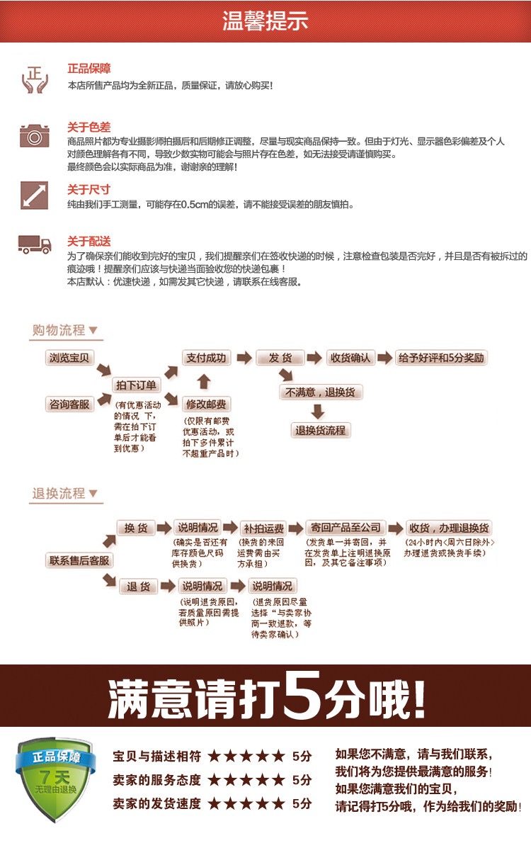 4. После того, как покупатель получает товар, он не влияет на вторую продажу. низ Может быть в течение 7 дней без полосатый Вернуть, но результирующие расходы на логистику должны быть несут.