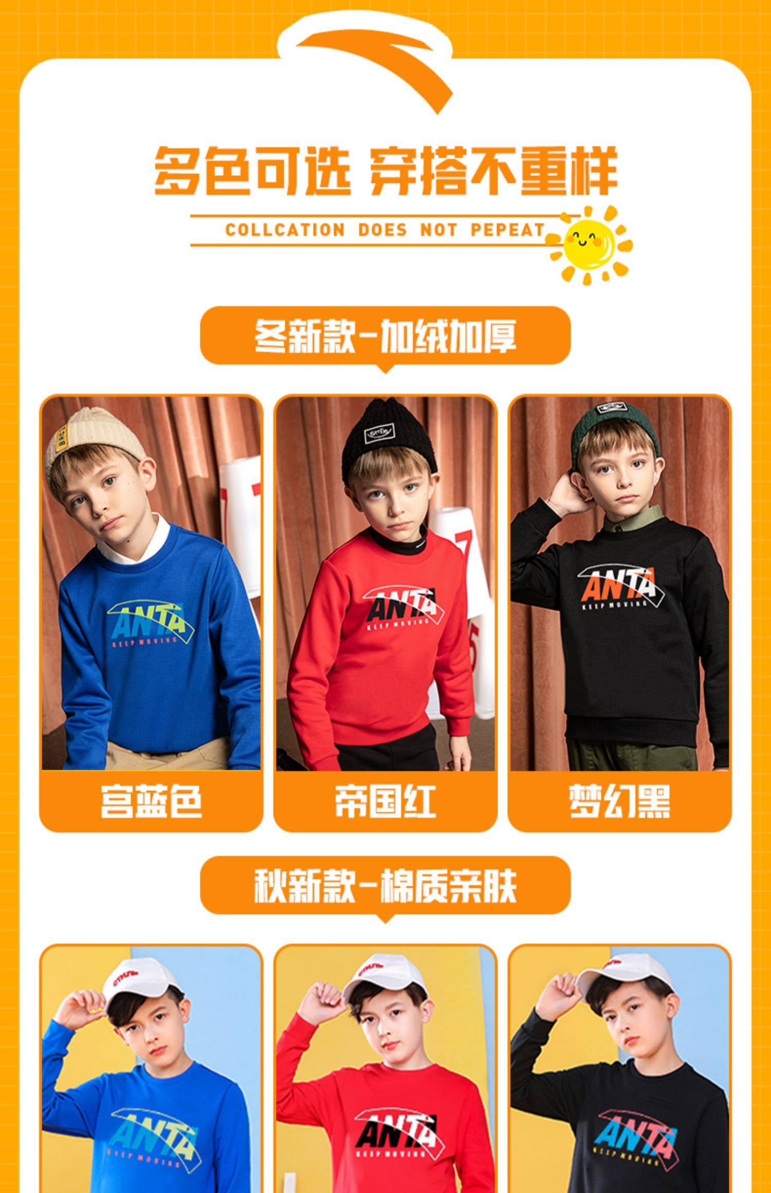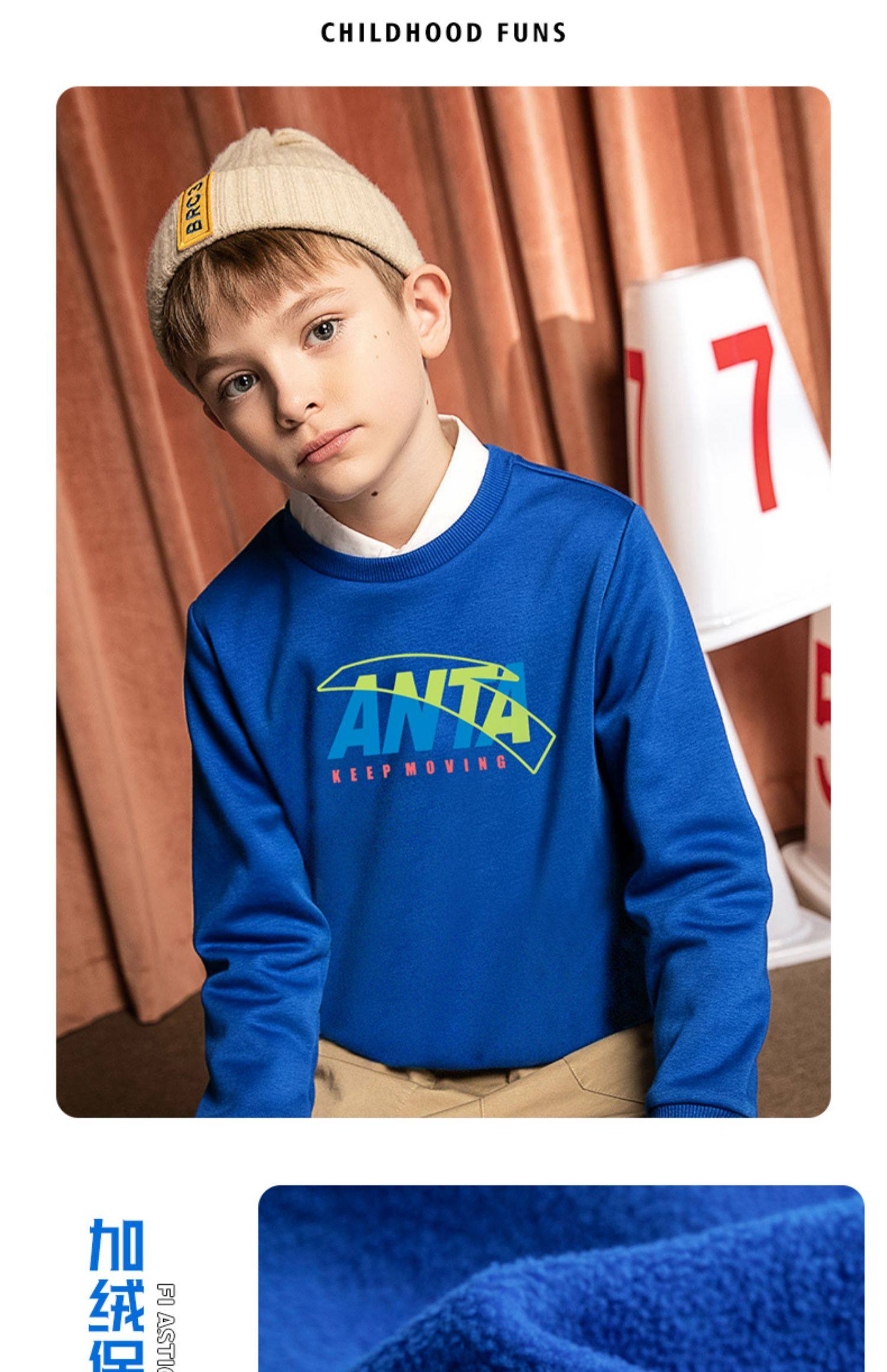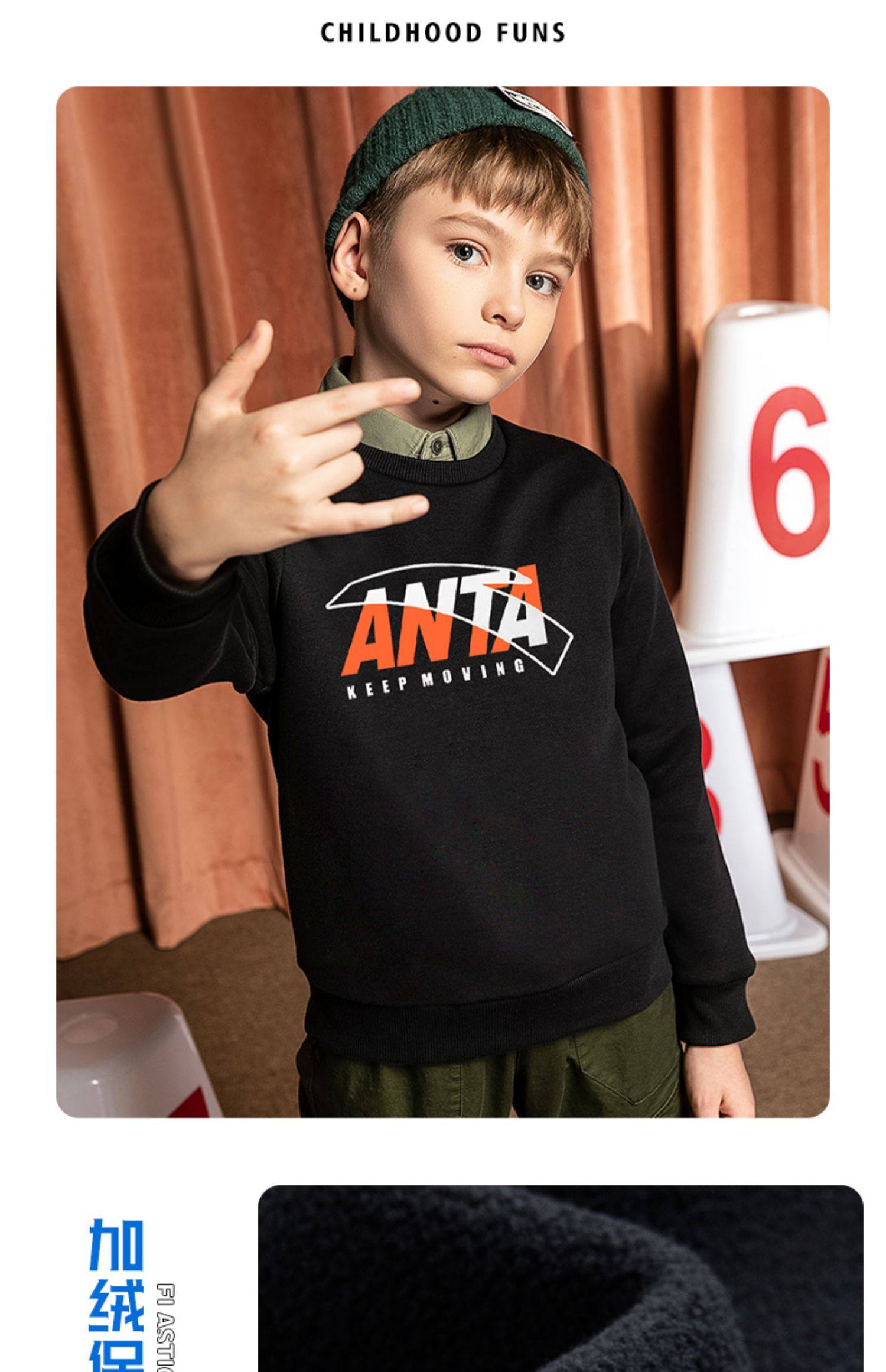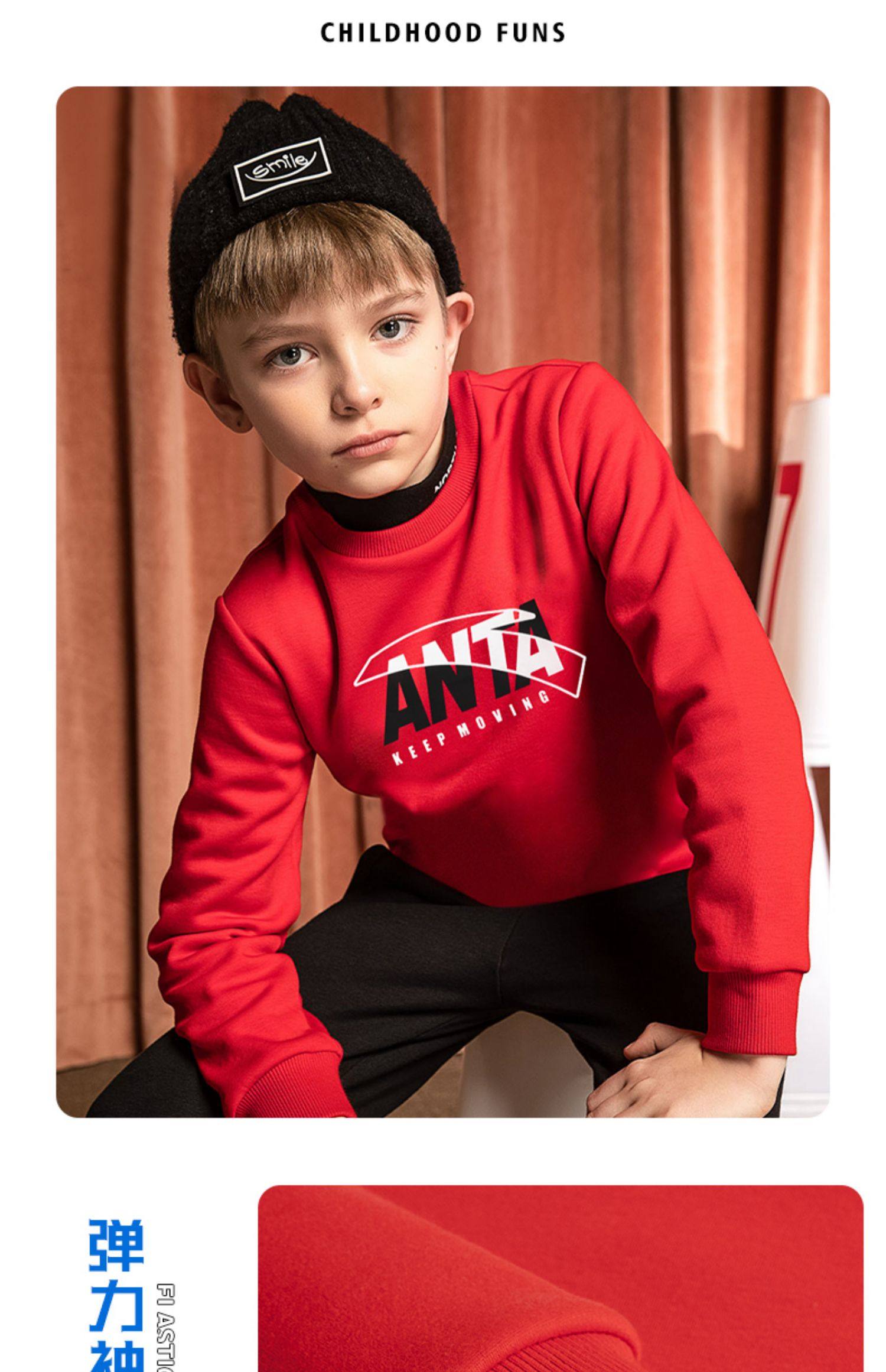 Анта детские толстовка на мальчика длинный рукав 2022 демисезонный новая коллекция мужской Имеет спортивный флагманский официальный сайт весна и летнее большое весеннее платье
