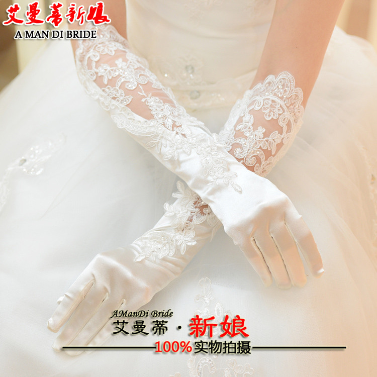 Свадебное платье перчатки Кружево длинный фасон белый корейская версия Турное платье длинные перчатки свадебное инструмент новый мама перчатки Атласная защита от солнца
