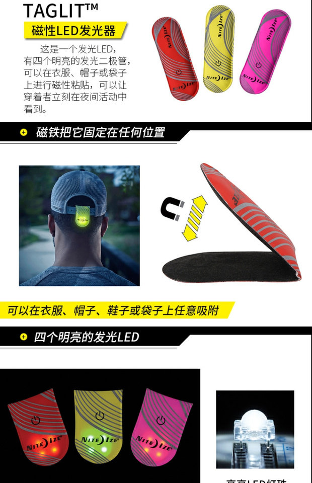 Niteize Nai Ai магнитный светодиодный светильник свет Наружная езда ночной прогон предупреждающий сигнал свет Отражать полосатый Зажим свет