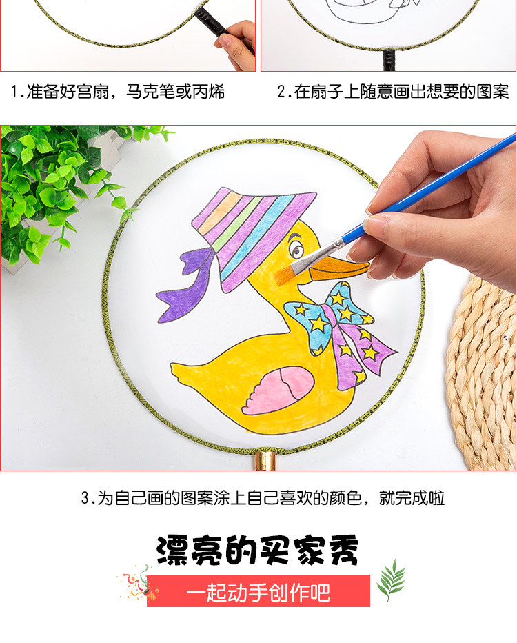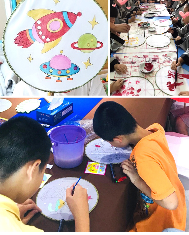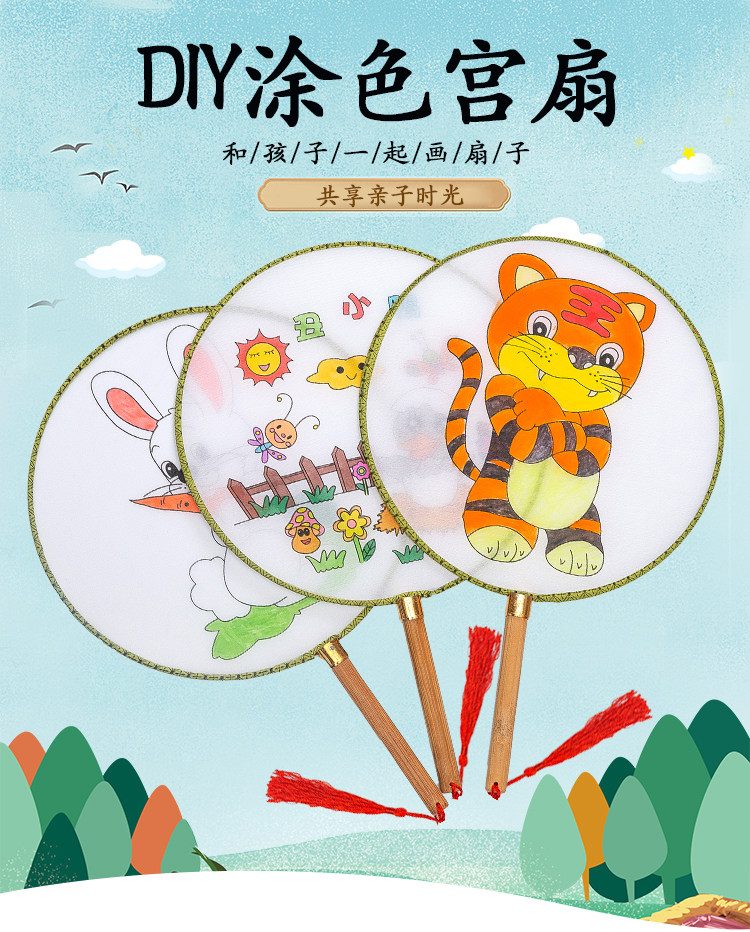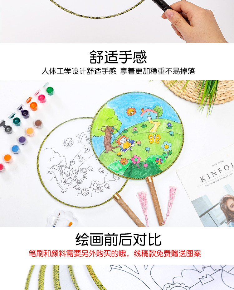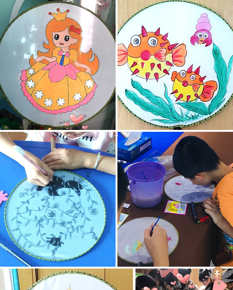 Нулевой белый поклонник детские Живопись DIY Fan. белый Демо-дворцовый вентилятор круглый вентилятор ручной обращается бумажный вентилятор маленький вентилятор ручная работа Материал