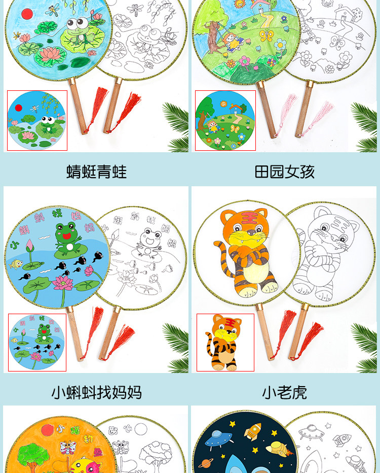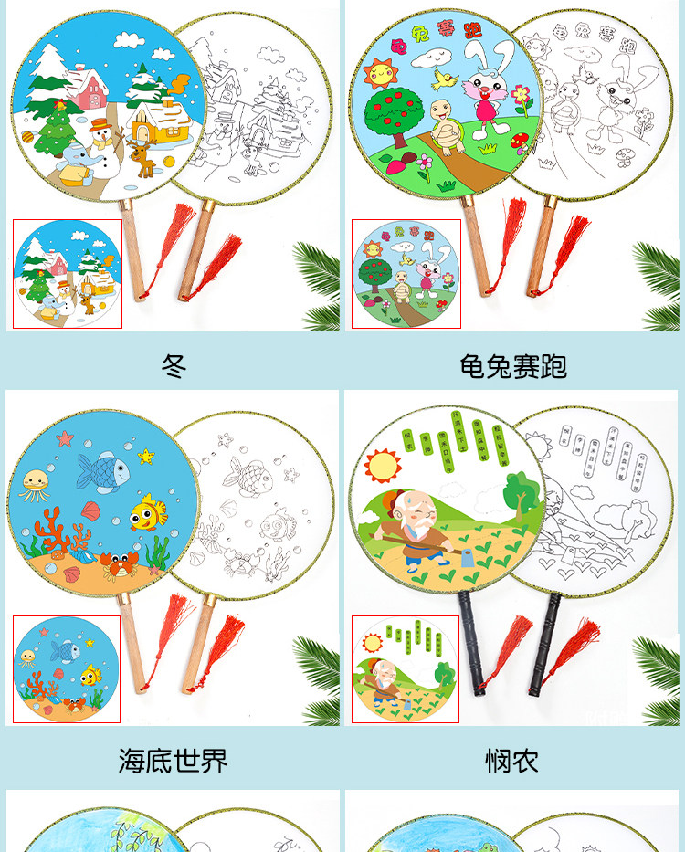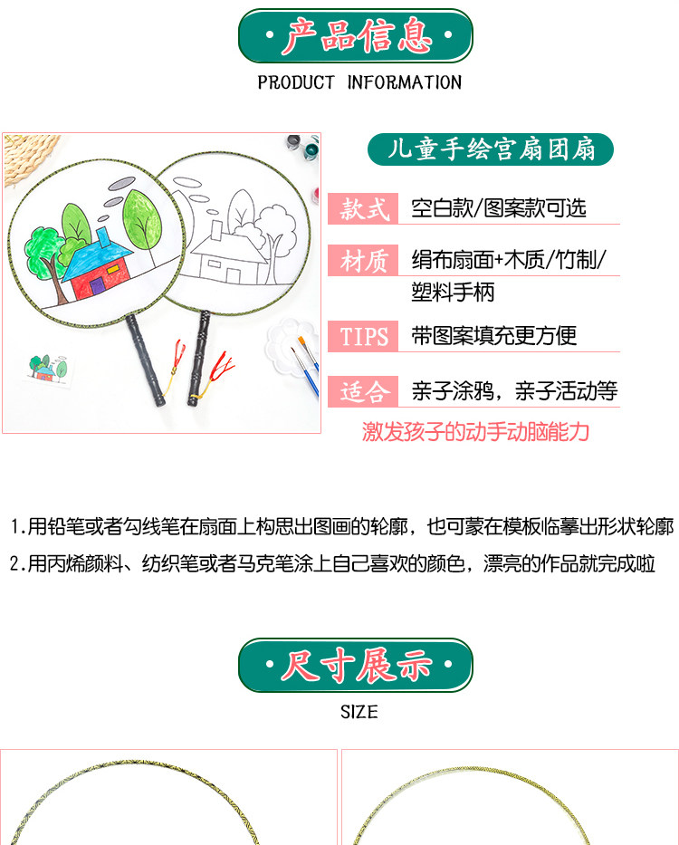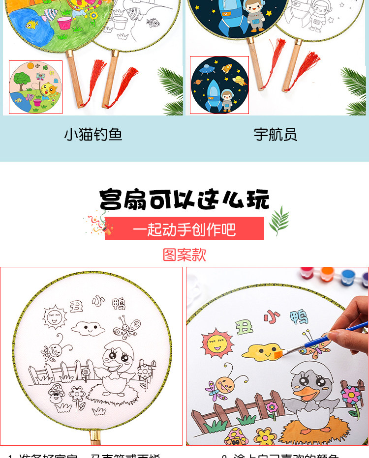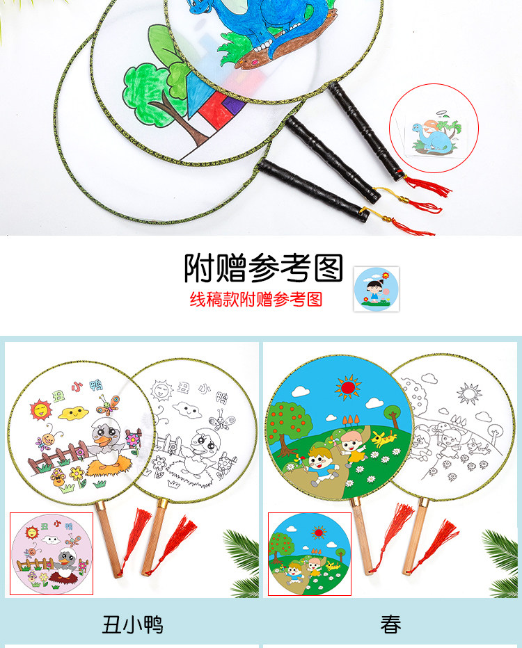 Нулевой белый поклонник детские Живопись DIY Fan. белый Демо-дворцовый вентилятор круглый вентилятор ручной обращается бумажный вентилятор маленький вентилятор ручная работа Материал