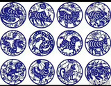 Детский сад набор знаков зодиака красный Вырезанный из бумаги чистый китайский стиль ручная работа Картина вырезанная из бумаги 12 знаков зодиака сине-белый фарфор вырезка из бумаги