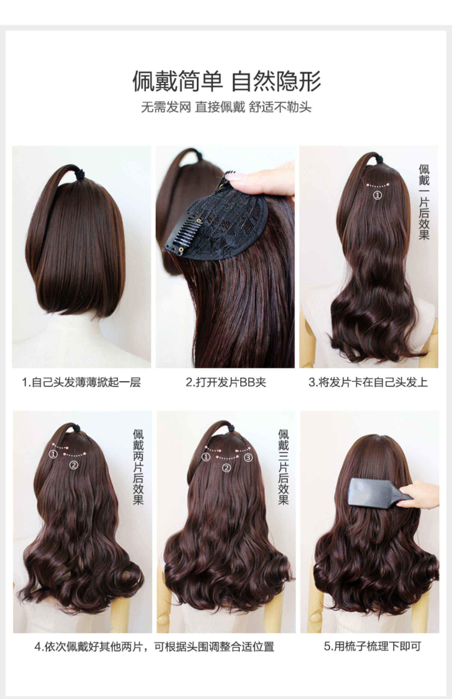 Aiya поддельные волосы женские длинные волосы общие вьющиеся большие волны пушистые пушистые копия Правда кусок природного невидимости без Следовая пленка
