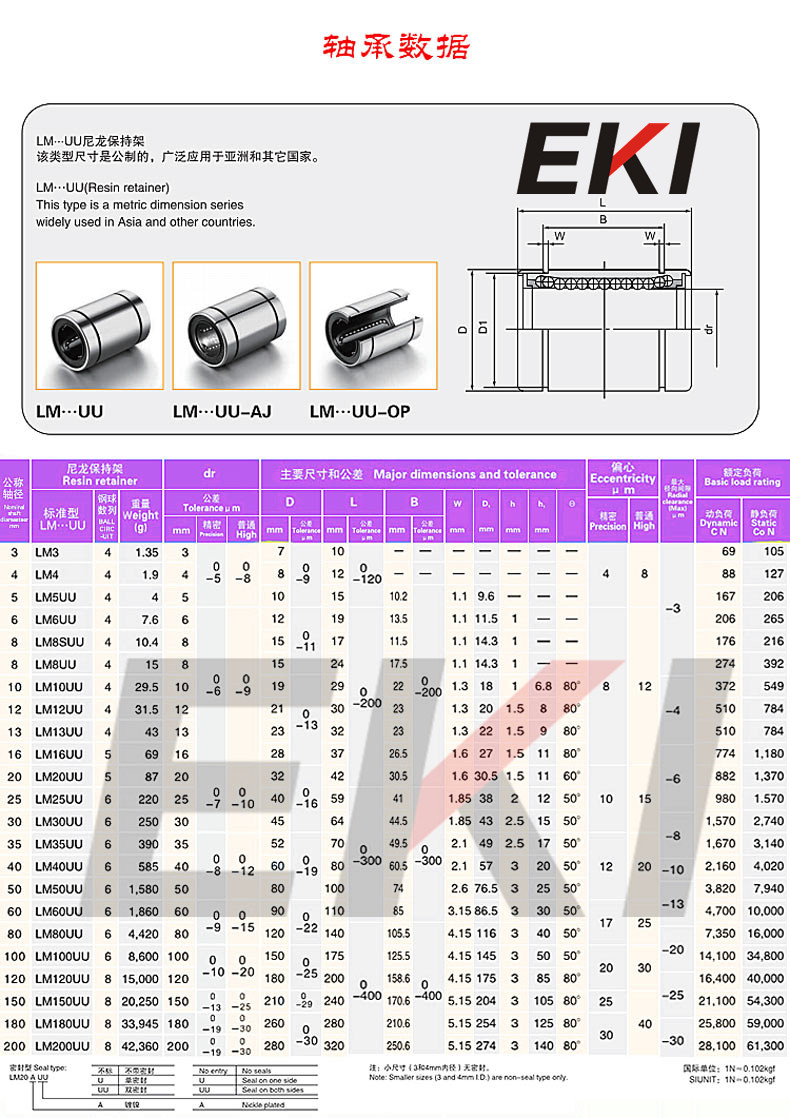 Импортный линейный подшипник EKI LM4 5 6 8 10 12 13 16 20 25 30 35 40 50 60 UU
