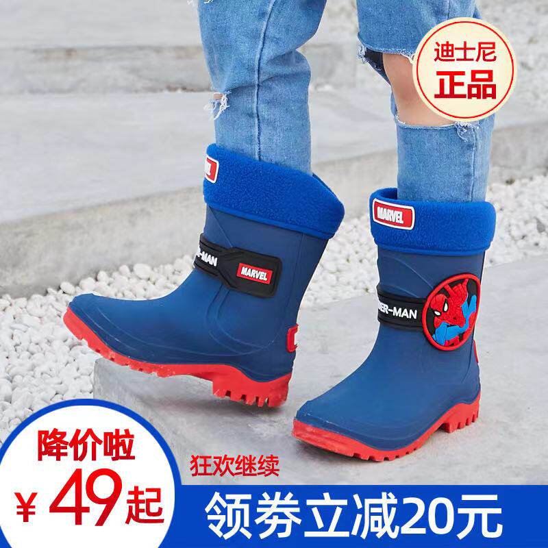 Дисней детские Дождь обувь на мальчика нескользящие Средние большие детские водяные туфли нескользящие Съемный водонепроницаемый нескользящие Дождь сапоги женщины
