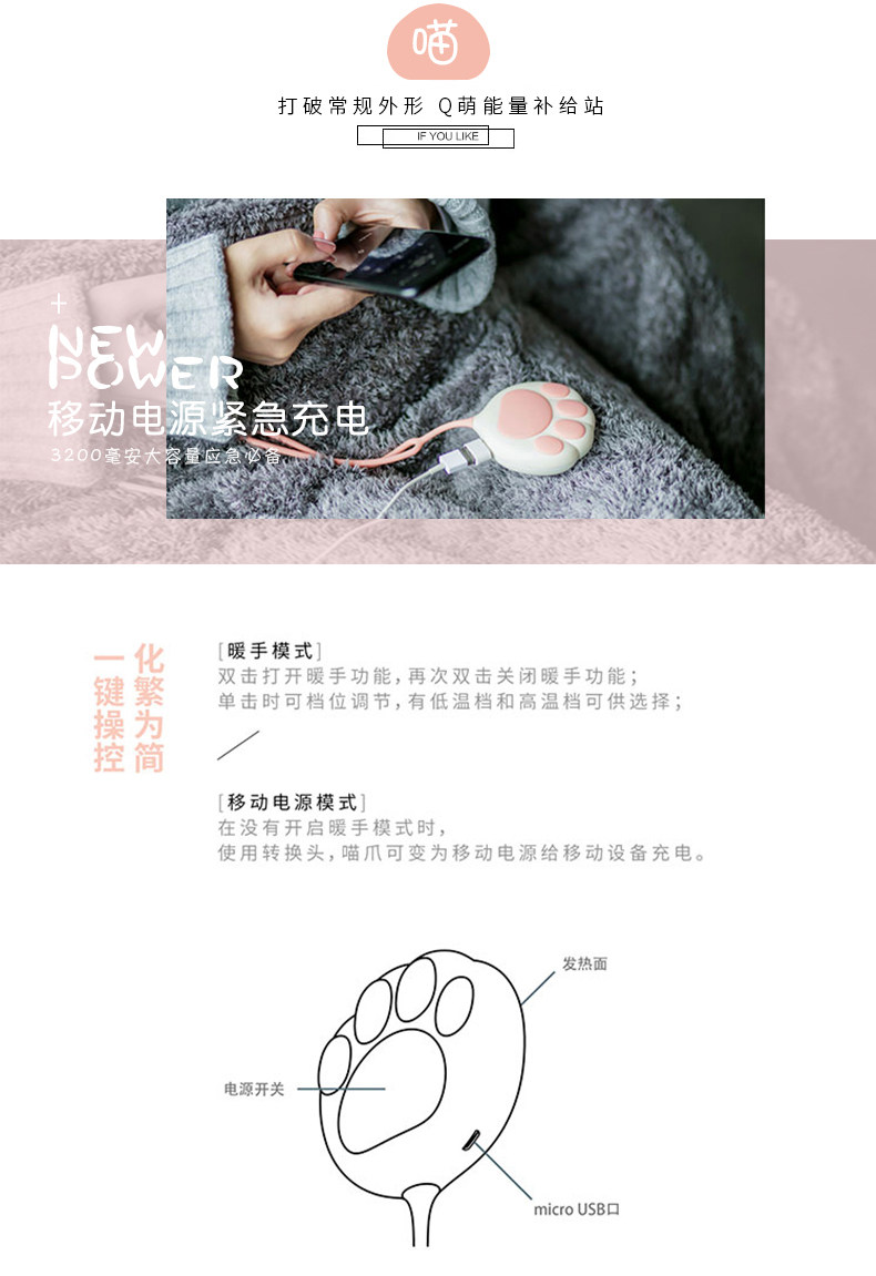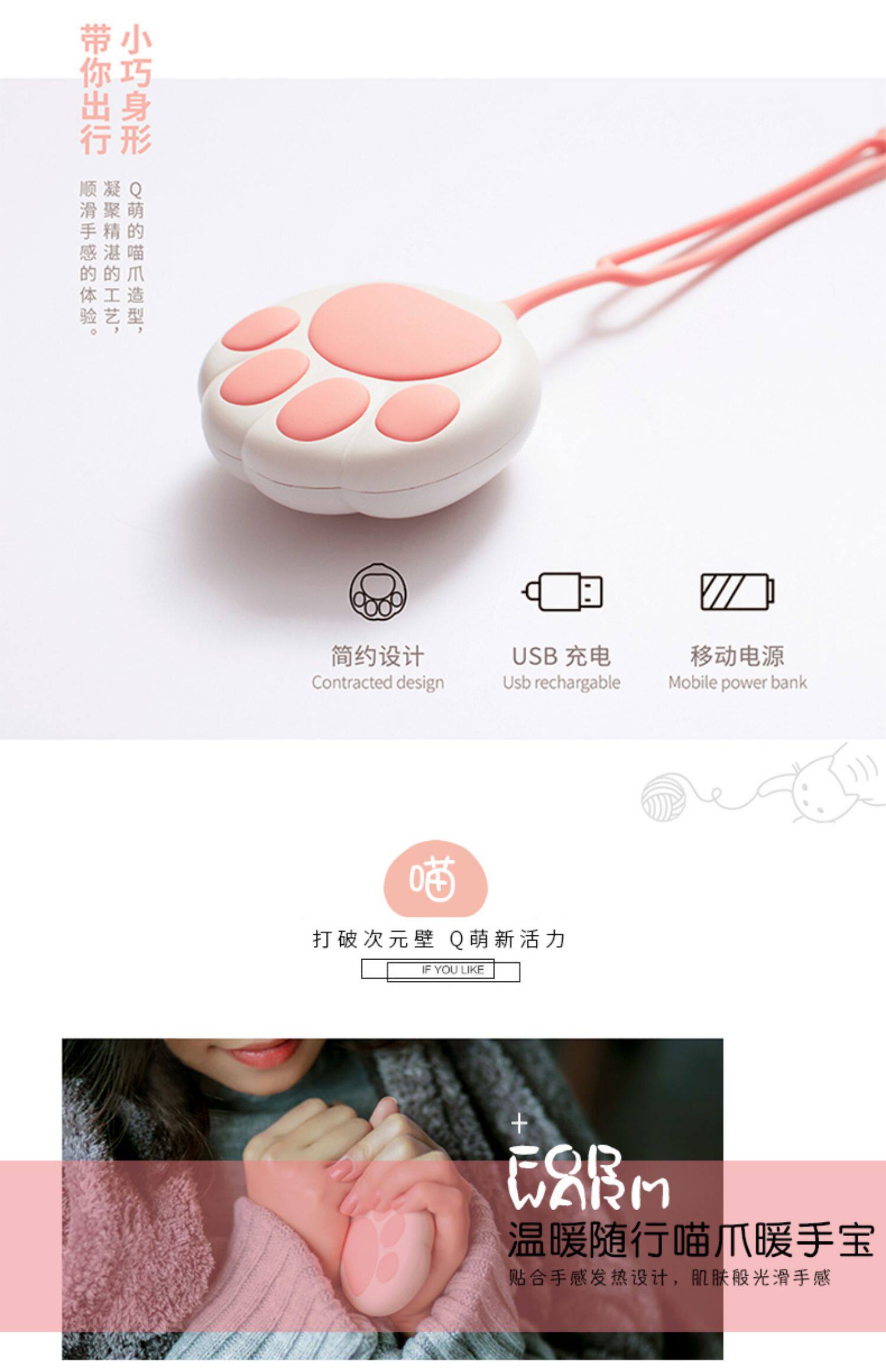 Теплая рука, девушка, один теплый детские Милый студент кошачий когтя рука держа зарядное сокровище артефакт портативный портативный