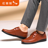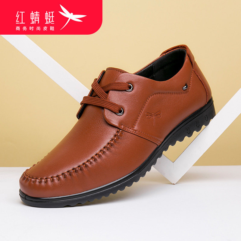 Красный стрекоза мужской кожаная обувь Весна и лето из натуральной кожи Бизнес для отдыха средних лет мужской кожаная обувь воздухопроницаемый мягкая кожа со шнурками мужской обувь