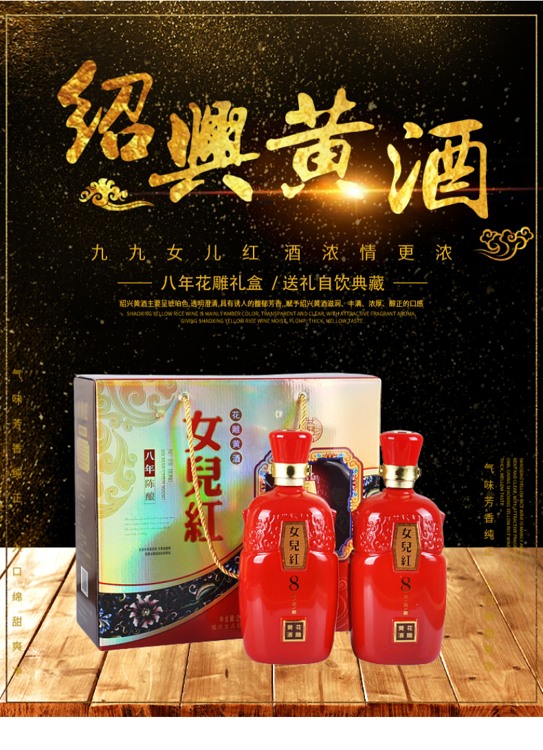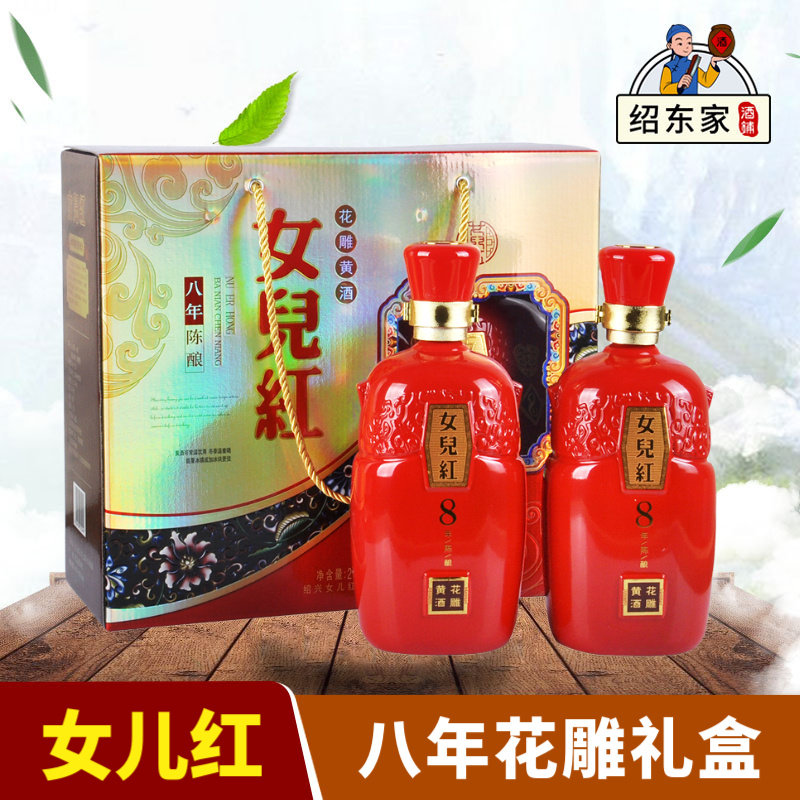 Shaoxing желтый вина дочь красный Октябрьский восьмилетний, цветок резьба 1000 мл * 2 бутылка подарочная коробка специальности замочить лекарство в подарок настоящее время