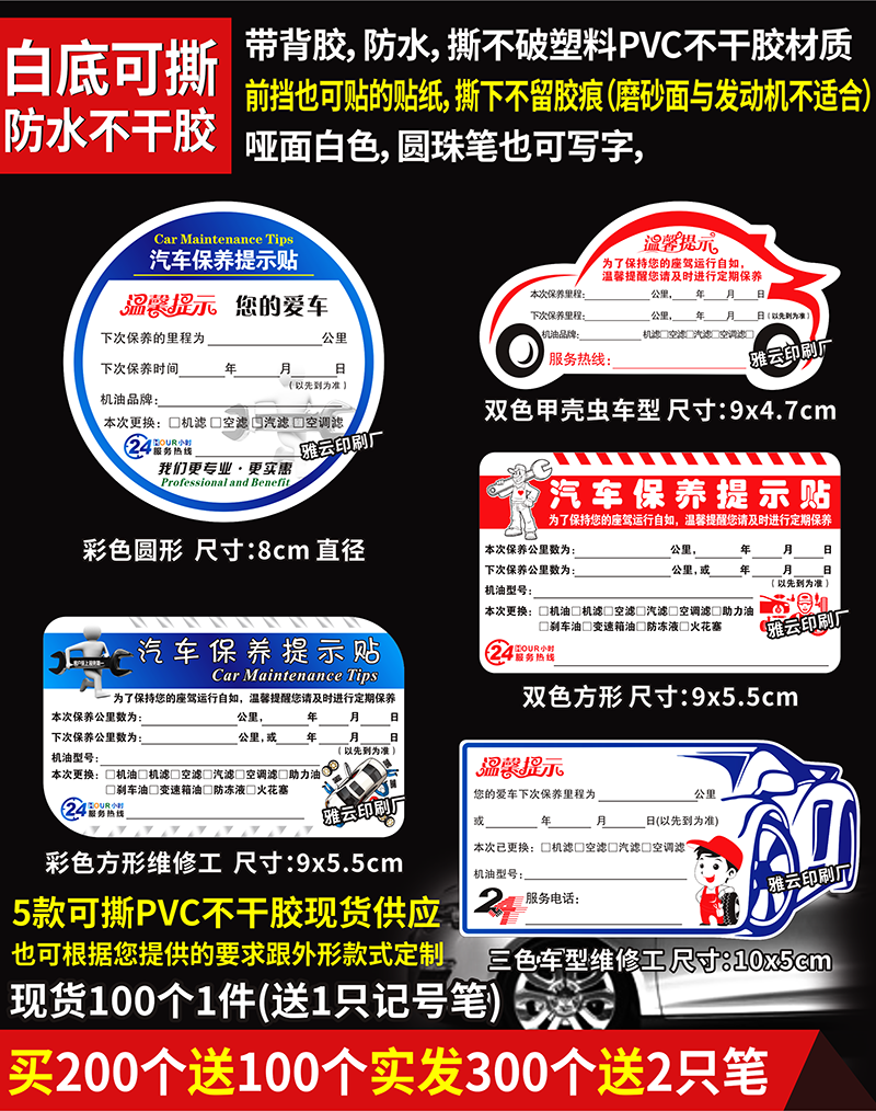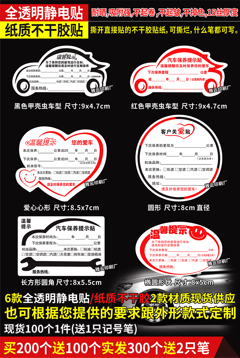 Напоминание о техническом обслуживании автомобилей Статические наклейки прозрачные стандартный стикер цвет Индустриальное напоминание о замене нефти, чтобы сделать бренд