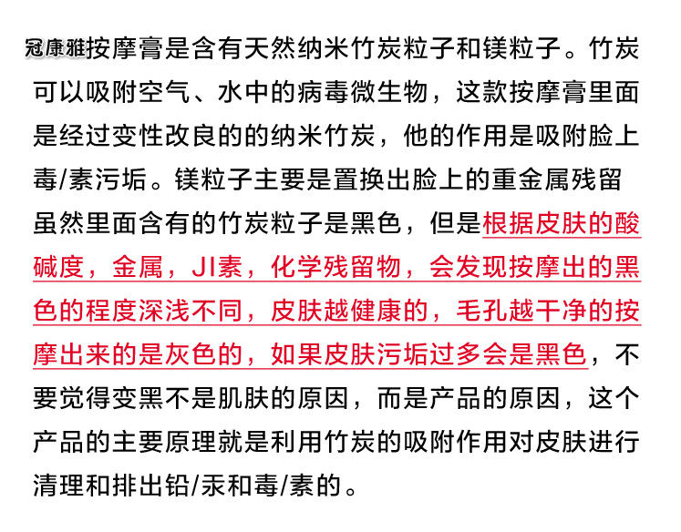 Массажный крем содержит имеет Бамбуковый уголь заменить частицы на кожу разных токсинов верх , Количество замененных токсинов отличается, меньше токсинов, а цвет массажа частично серый Есть много токсинов, и цвет частичный черный ,по низ имеет 2 Сестра бумажная дружба обеспечивает демонстрацию!