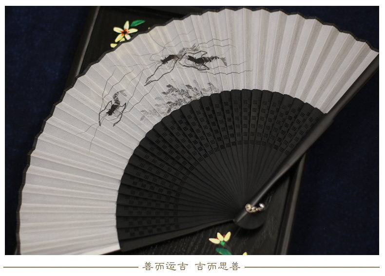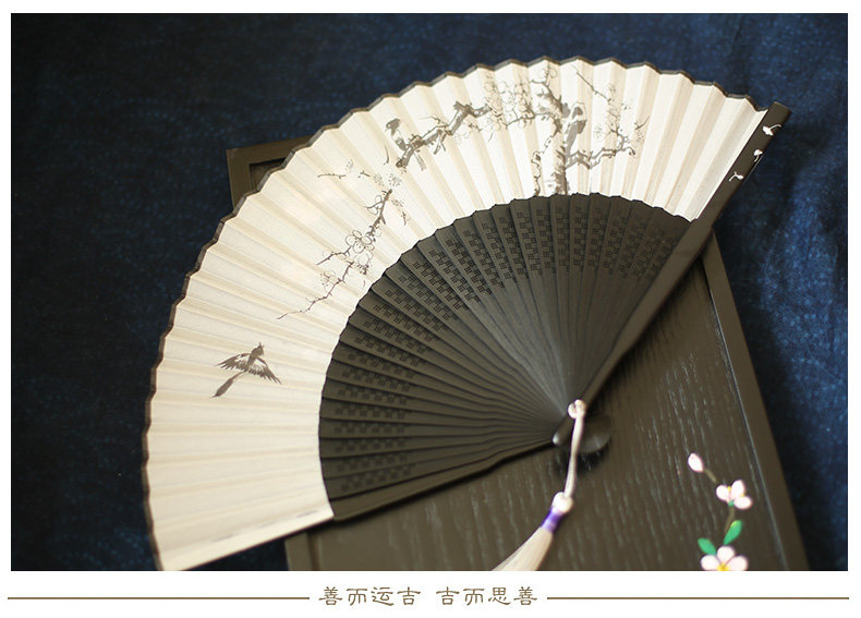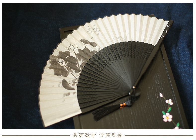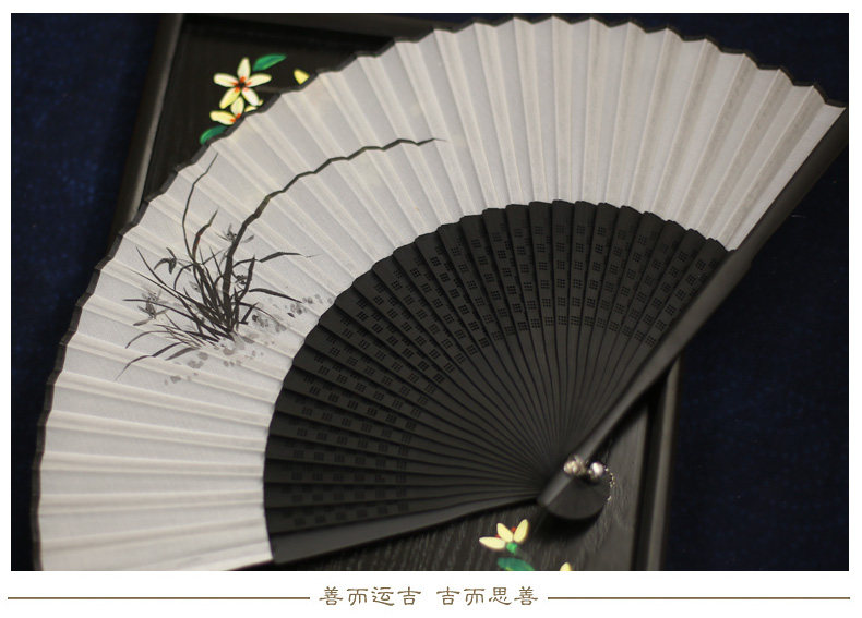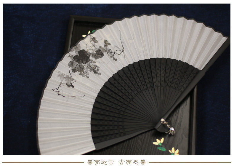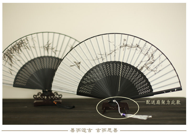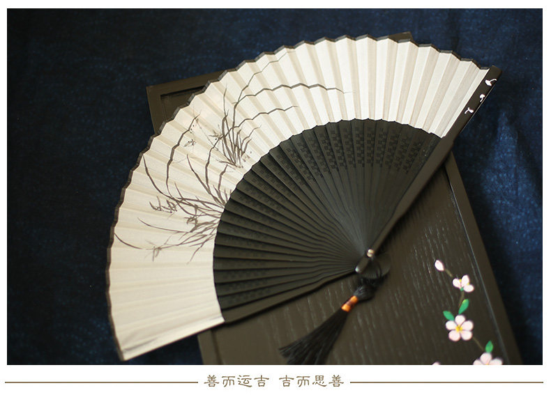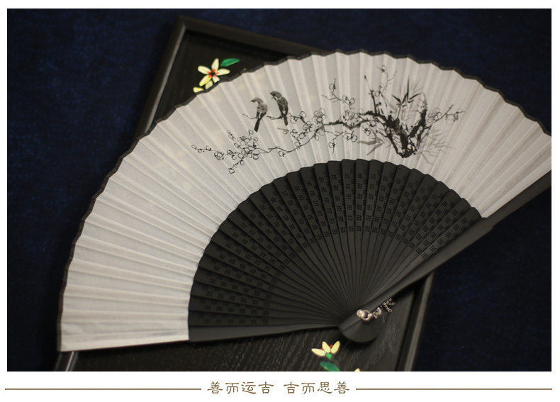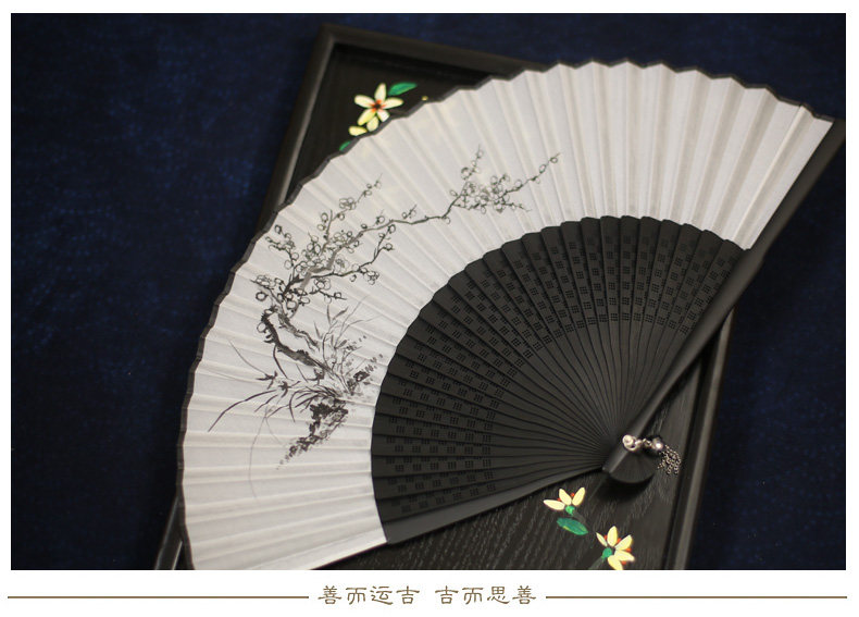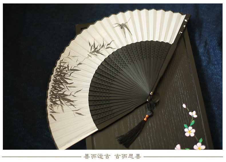 Jinde Китайский фанат женский Шелковый вентилятор черный белый Складной вентилятор чернил древний бамбуковый вентилятор мужские и женские 6,5-дюймовый танец вентилятор