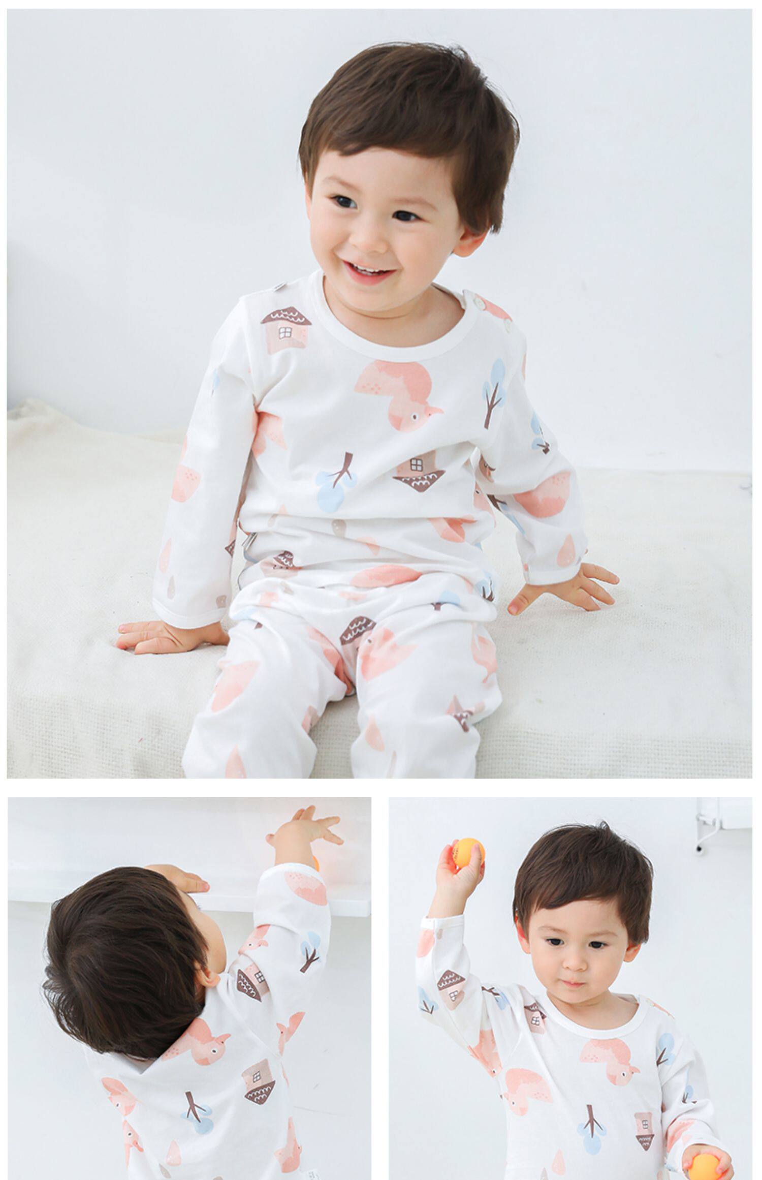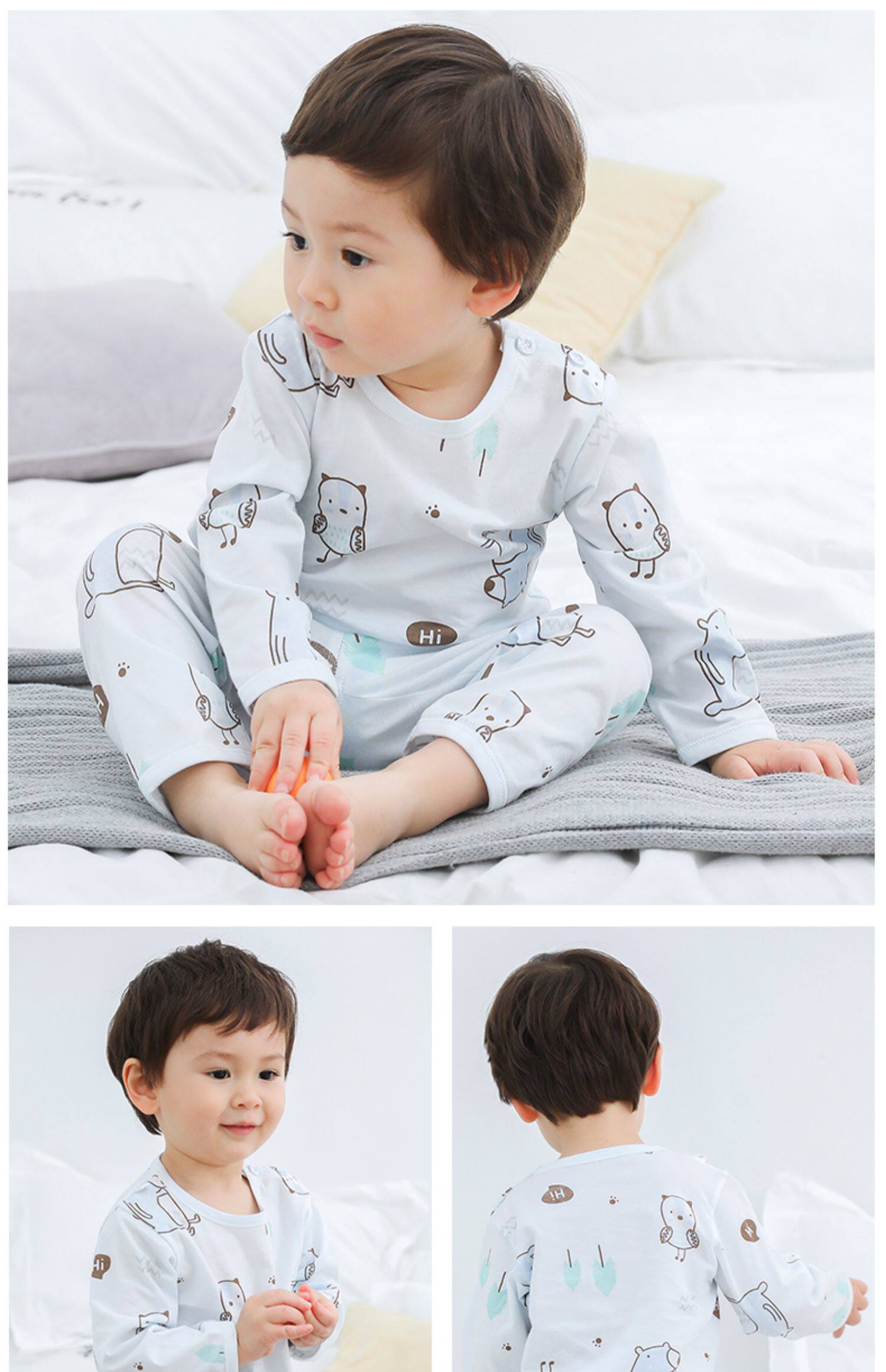 Детские демисезонный длинный рукав верх Одежда на младенца Одежда с кондиционером один Осенняя одежда чистый хлопок Нижнее белье лето тонко стиль на мальчика пижама