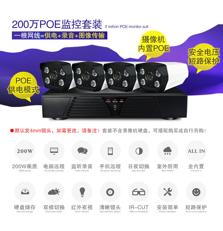 4 дороги Poe. слово Мониторинг оборудования имеет Кабельный набор камера стали комплект Домашняя фабрика интерьер и снаружи высокая Дневной свет