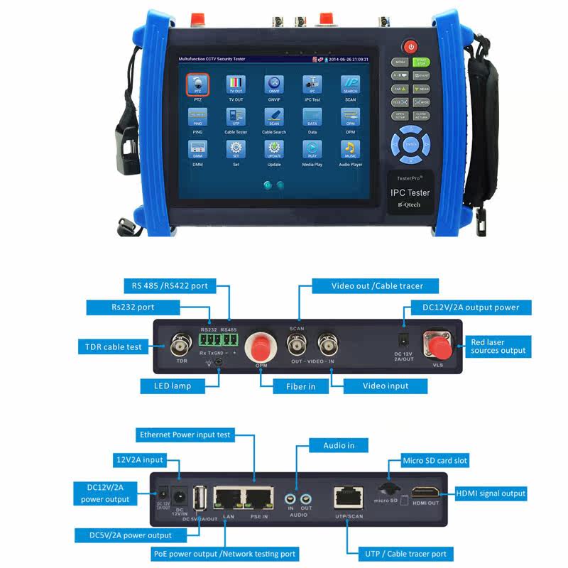 PTZ control +cable scan +POE power supply+Optical fiber power meter+Visual fault locator+TDR+Multimeter=Full functions