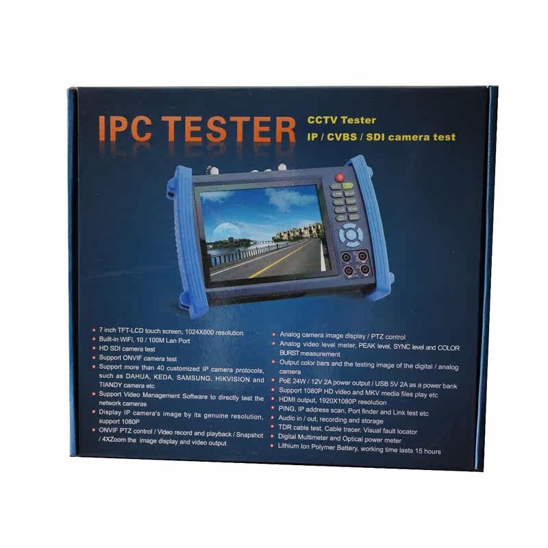 IP camera tester is great CCTV tools for IP camera’s installation and maintenance, both for Analog and IP camera test, built in video level meter, Analog and digital video signal output, IP address scan, Ping test, Port flashing, cable test, Digital Multi-meter, optical power meter and TDR cable tester etc ,easy to operate