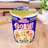 Niki Nissin Вентиляторы Пузырь Лицо Мгновенная Кубок Лапша Ткань Морепродукты Кубок Полк полосатый 6 чашек смешанного
