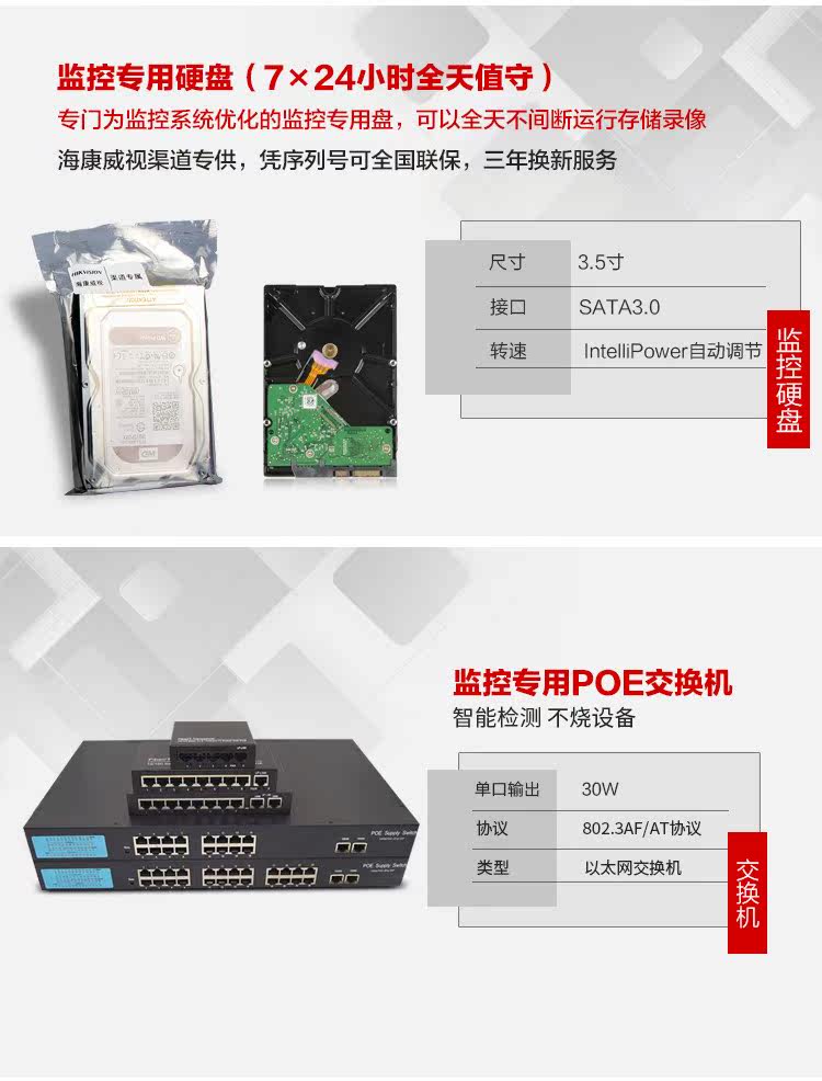 Haikang Посетите 2 миллиона мониторинга POE комплект H.265 Кодированное хранение Минус 1 Путь 4 6 8 12 16