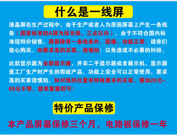 Цвет: 17-дюймовый дисплей【Экран первой линии】 【Экран имеет один полосатый Проволока】, 17-дюймовый телевизор【Экран первой линии】 【Экран имеет один полосатый Проволока】, 19-дюймовый дисплей квадратного экрана【Экран первой линии】 【Экран имеет один полосатый Проволока】, 19-дюймовый квадратный экранный телевизор【Экран первой линии】 【Экран имеет один полосатый Проволока】, 19-дюймовый широкоэкранный дисплей【Экран первой линии】 【Экран имеет один полосатый Проволока】, 19-дюймовый широкоэкранный телевизор【Экран первой линии】 【Экран имеет один полосатый Проволока】, 20-дюймовый широкоэкранный дисплей【Экран первой линии】 【Экран имеет один полосатый Проволока】, 20-дюймовый широкоэкранный телевизор【Экран первой линии】 【Экран имеет один полосатый Проволока】, 22-дюймовый широкоэкранный дисплей【Экран первой линии】 【Экран имеет один полосатый Проволока】, 22-дюймовый широкоэкранный телевизор【Экран первой линии】 【Экран имеет один полосатый Проволока】, 15-дюймовый дисплей【Преступность】 【Экран имеет пятно】, 15-дюймовый телевизор【Преступность】 【Экран имеет пятно】, 17-дюймовый дисплей【Преступность】 【Экран имеет пятно】, 17-дюймовый телевизор【Преступность】 【Экран имеет пятно】, 19-дюймовый дисплей квадратного экрана【Преступность】 【Экран имеет пятно】, 19-дюймовый квадратный экранный телевизор【Преступность】 【Экран имеет пятно】, 19-дюймовый дисплей VGA + HDMI интерфейс【Экран имеет один полосатый Проволока】, 20-дюймовый дисплей VGA + интерфейс HDMI【Экран имеет один полосатый Проволока】, 22 дюйма дисплей VGA + HDMI интерфейс【Экран имеет один полосатый Проволока】, 24-дюймовый широкоэкранный дисплей【Экран первой линии】 【Экран имеет один полосатый Проволока】Тип пакета: Официальный стандартный совпадение