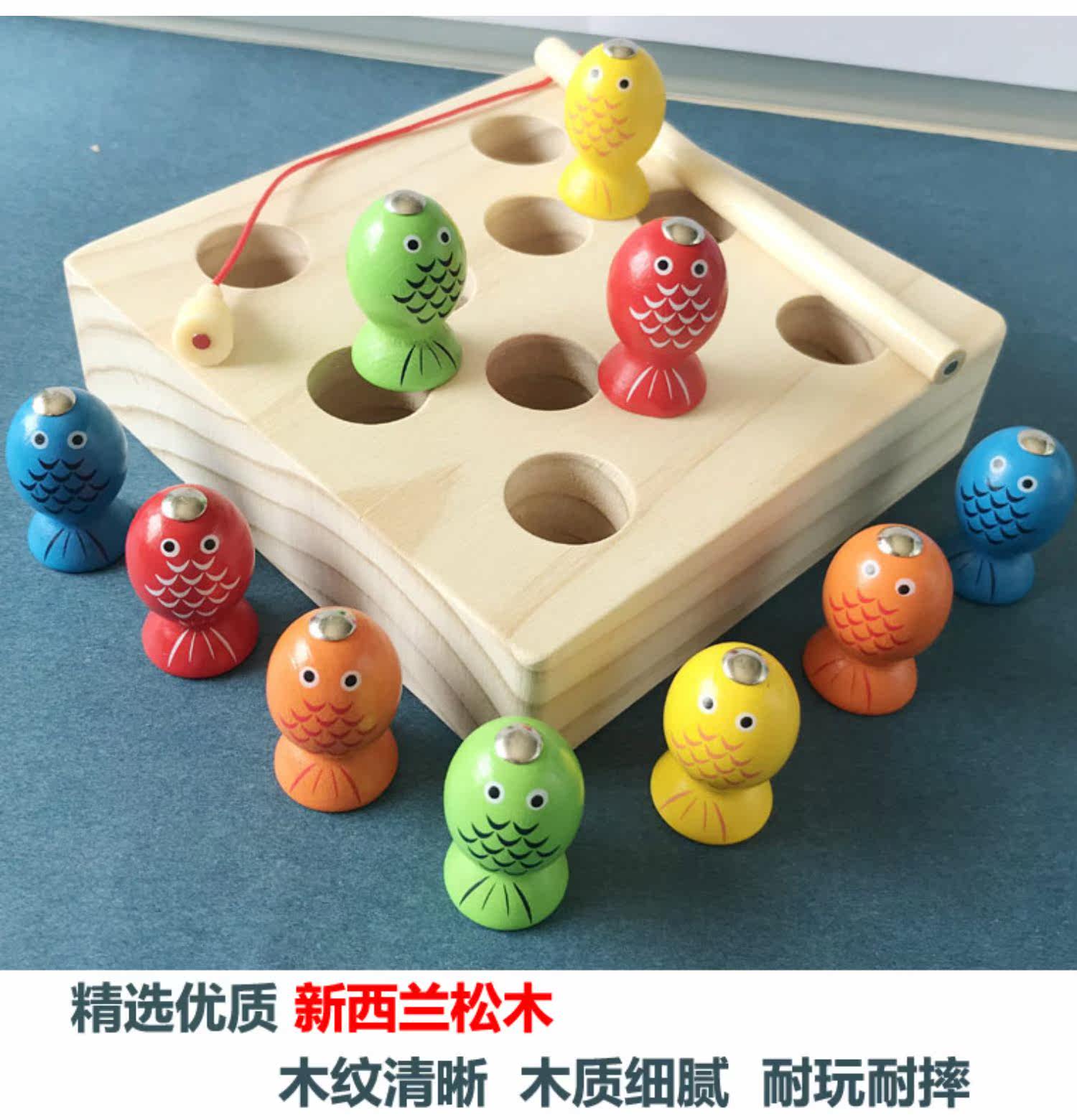 Детские Деревянная рыбалка игрушка детские Магнитный котенок рыбалка 1-2-3 года детские Головоломка раннее обучение