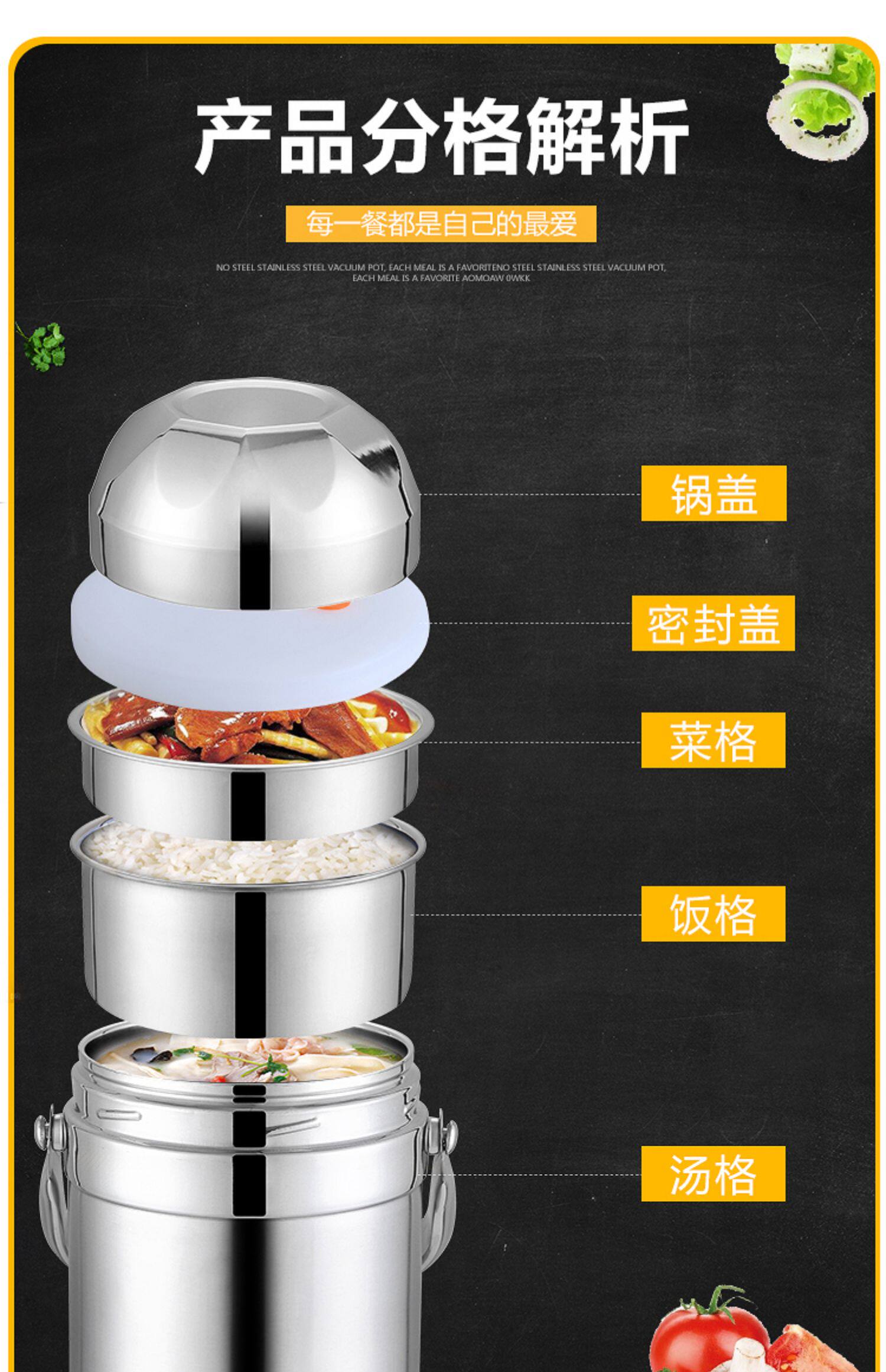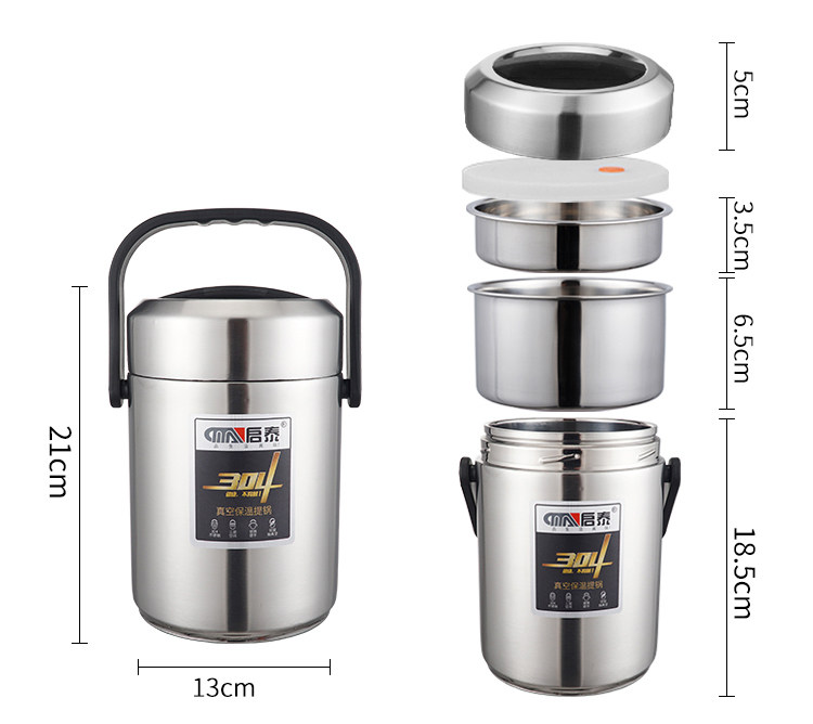 В вакуумной изоляции из вакуума из нержавеющей стали длинный Изоляция 1 человек 3 -байер супер изоляционная коробка ланч -ланч Большой -Любость 12 -часовая изоляция ведро