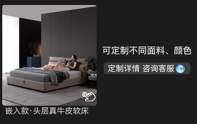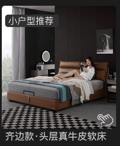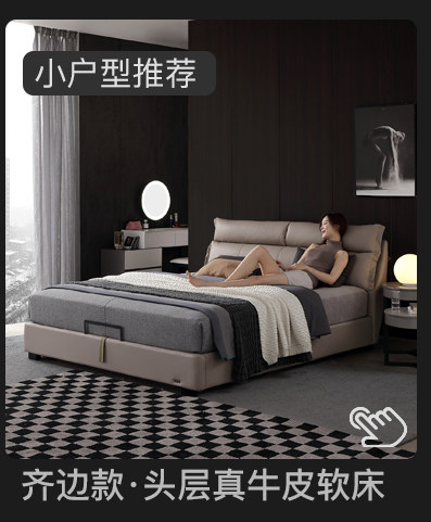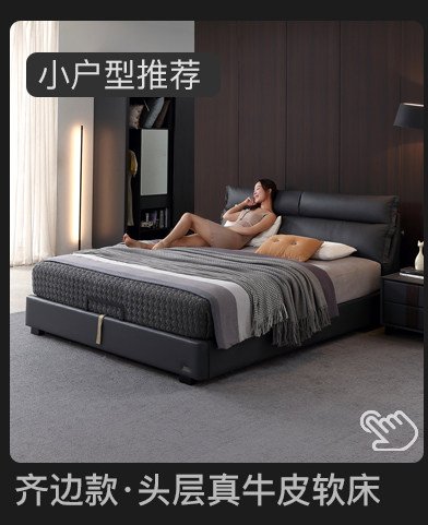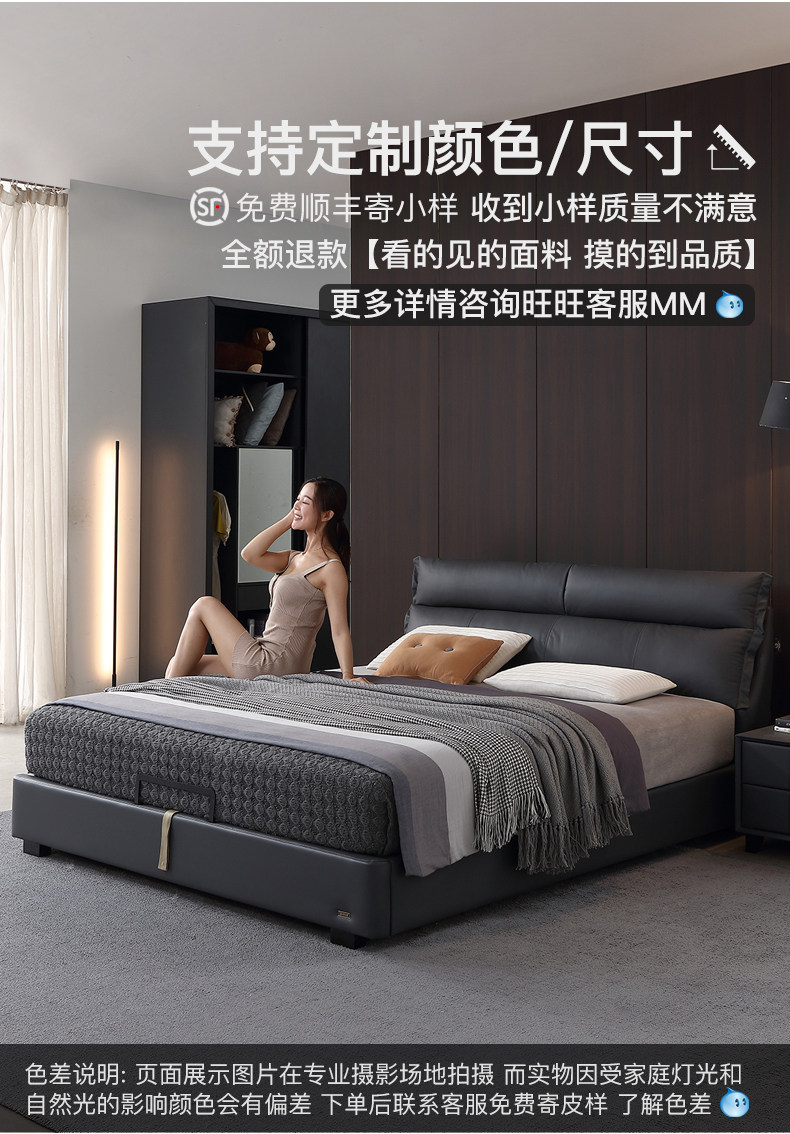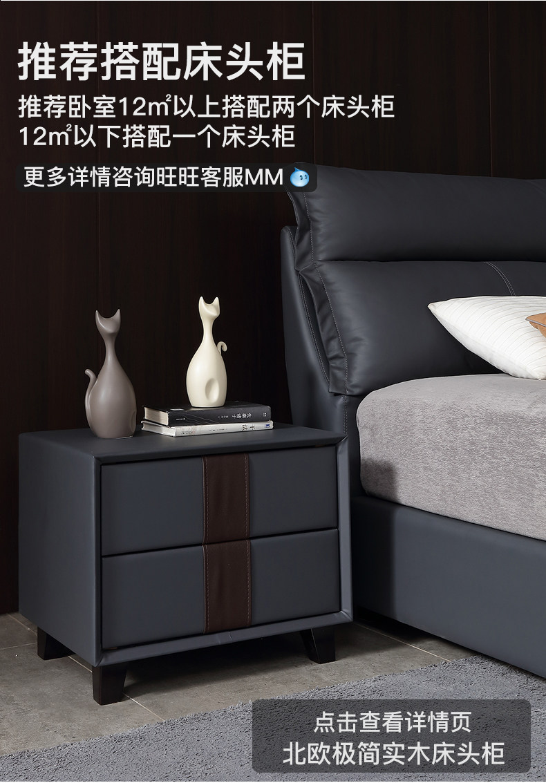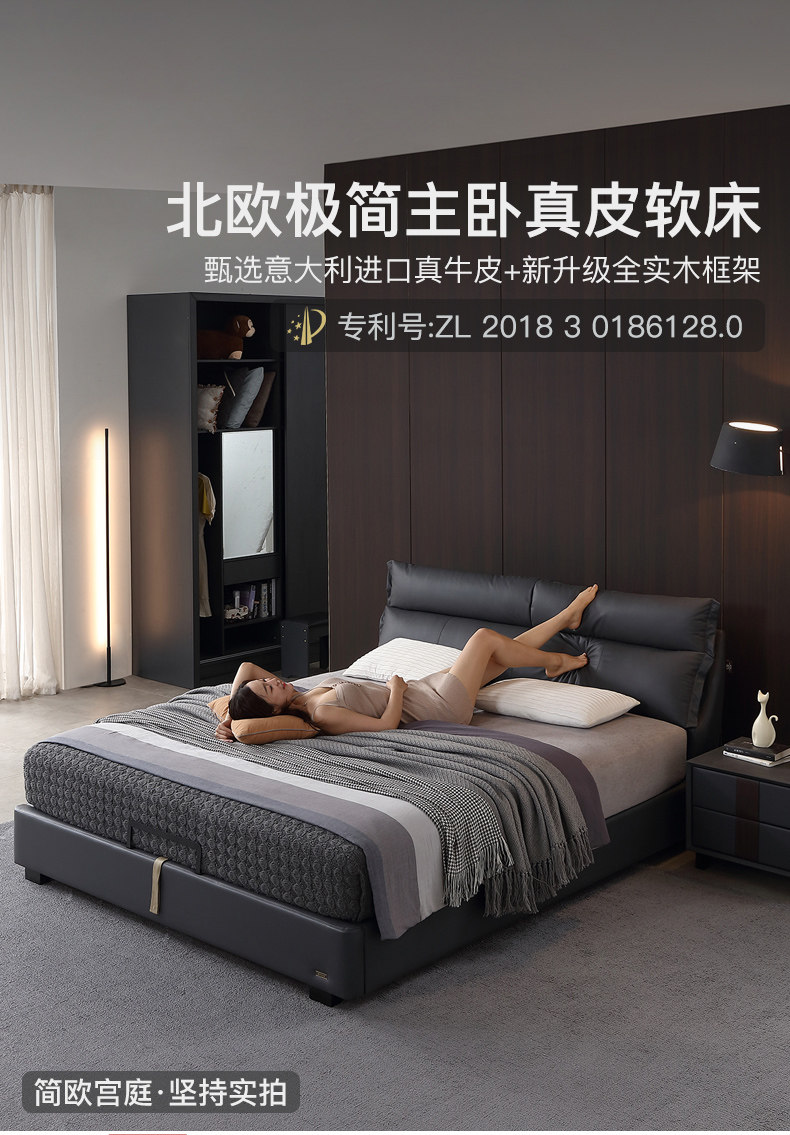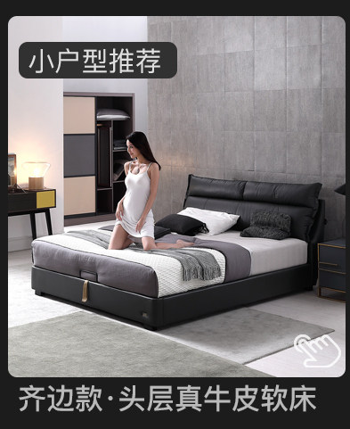 Кожаная кровать Nordic из натуральной кожи Простая кровать сейчас поколение Малогабаритная квартира мягкая пакет Кровать двуспальная кровать главная спальня свадебная кровать с боковой кроватью 1,8 метра