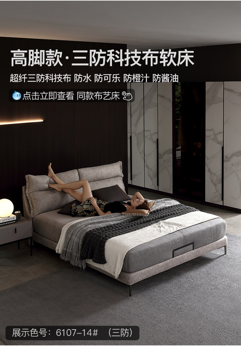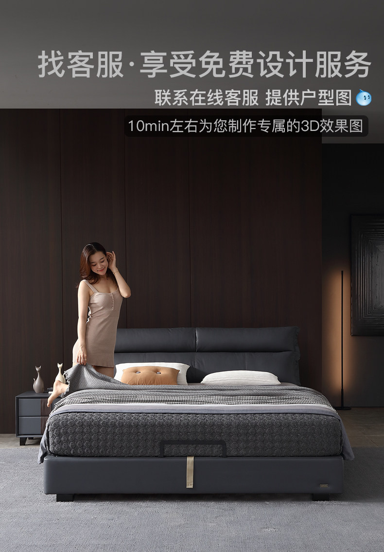 - 【Кровать из зернистой кожи + латексный матрас + 2 шкафа 18 #】Каркас бревенчатого ряда 3D