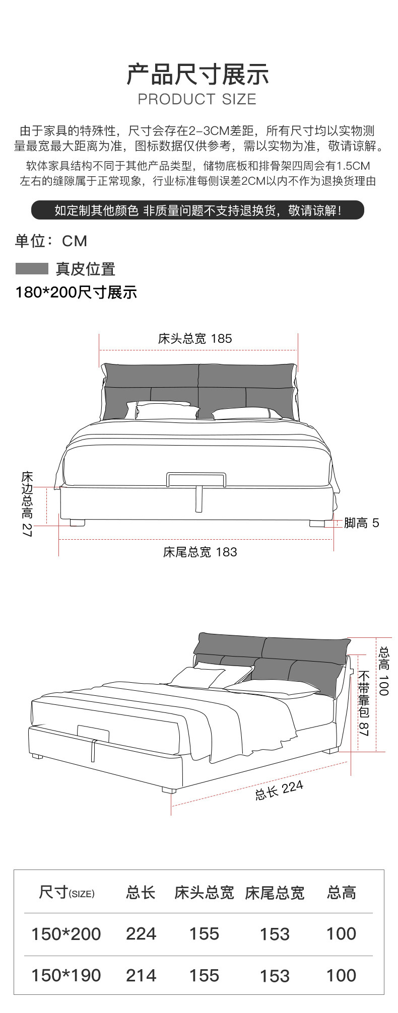 - 【Кровать из натуральной кожи + защитный матрас】Каркас бревенчатого ряда 3D