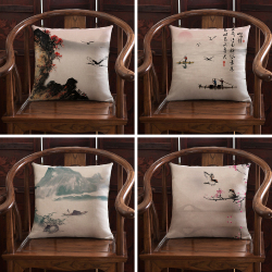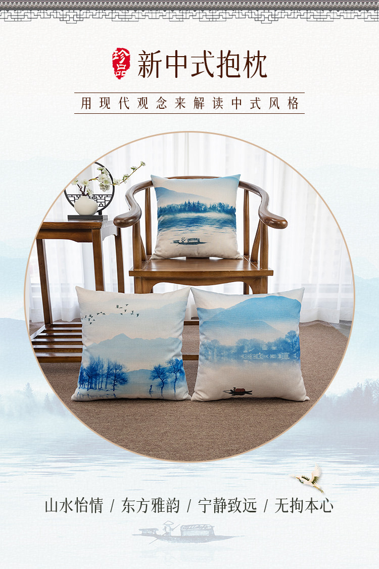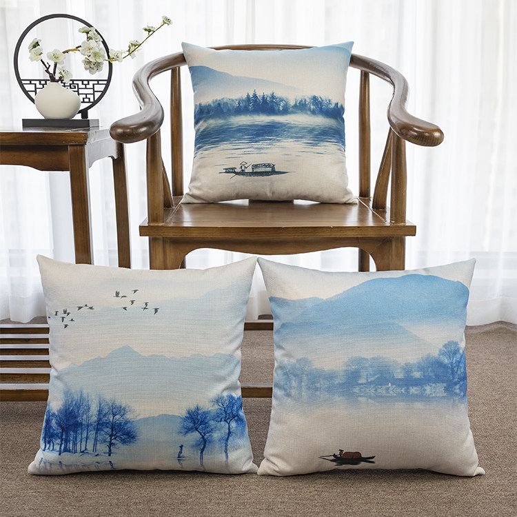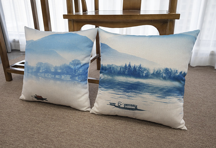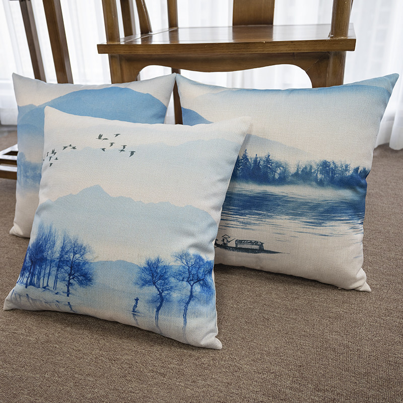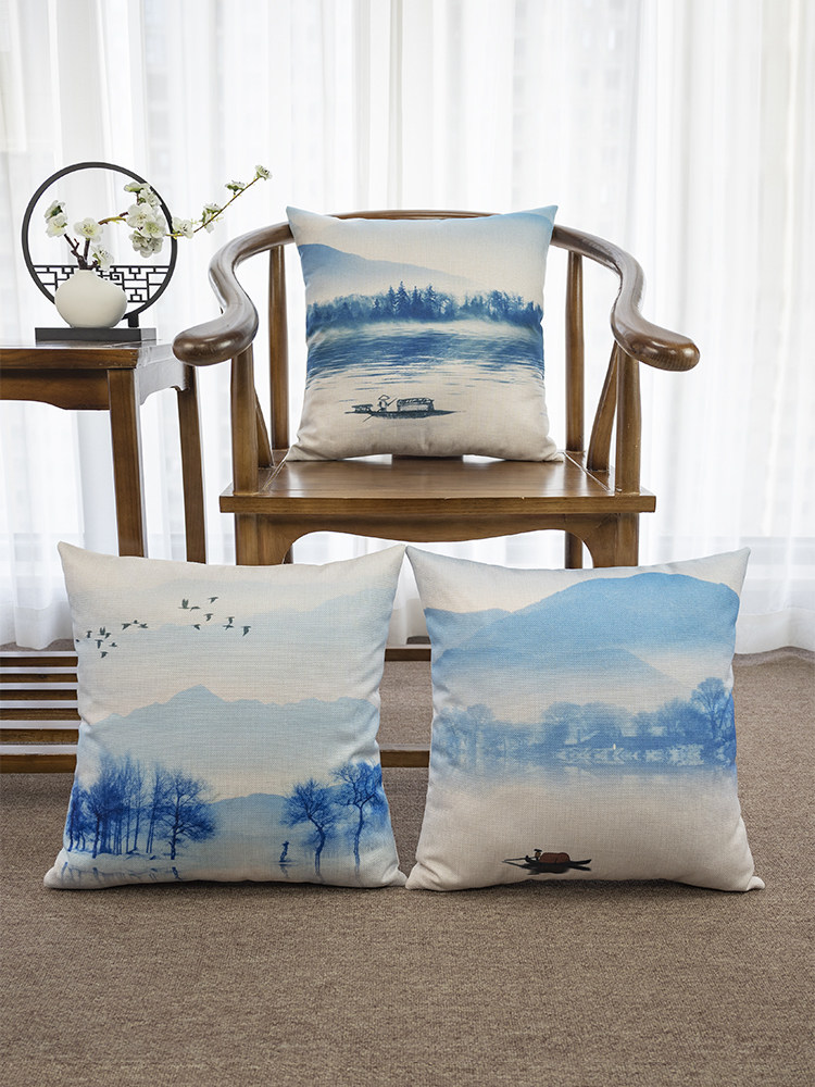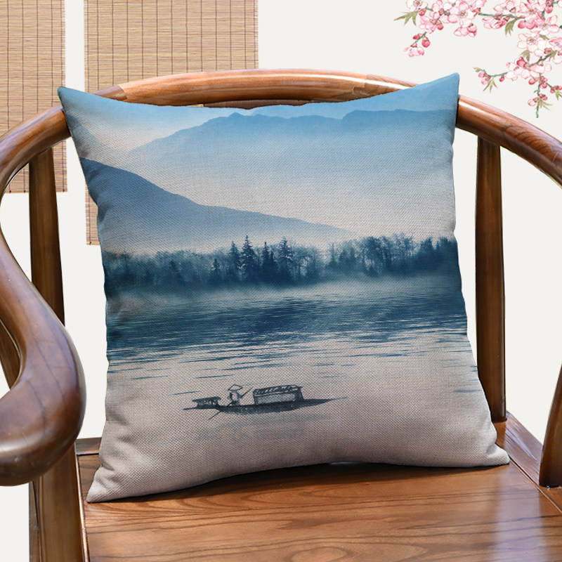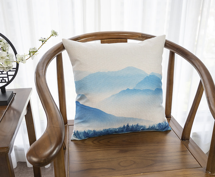 Новая китайская стиль Zen в стиле чернила ландшафт, хлопчатобумажная и льняная подушка подушка подушка подушка подушка подушка подушка подушка подушка подушка подушка подушка подушка