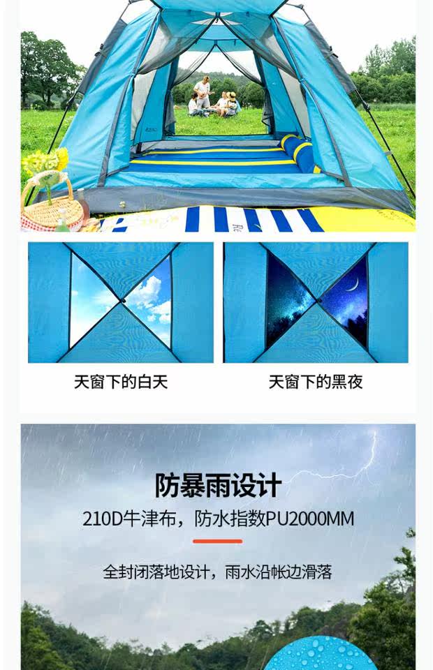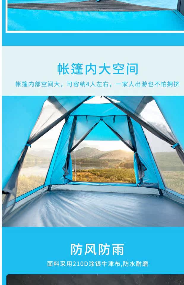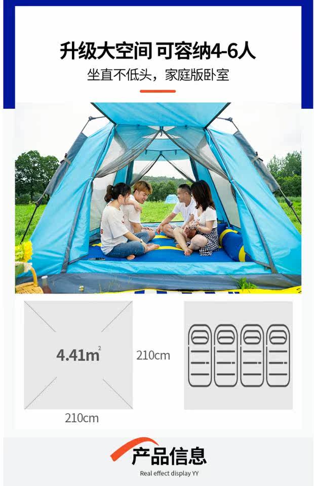 Полностью автоматическая Палатка на открытом воздухе кемпинга утепленный Дождь -Проницаемое крупно -масштабное кемпинговое оборудование -это ультра -светлый и открытый взрыв в Will