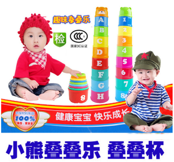 0-1-2 лет детская рука ручной работы детские Головоломки игрушечный слой стека Кубок наложенного музыкального набор кольцо Раннее образование