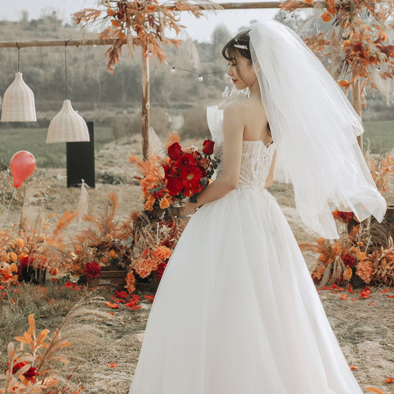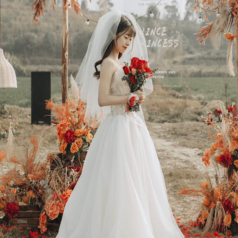 Корейский стиль новый Мать стиль, простая, трущоба белый сторона фасон средней длины стиль новый мама свадебное Свадебное платье для волос