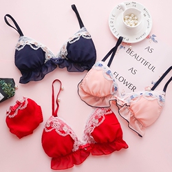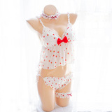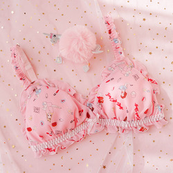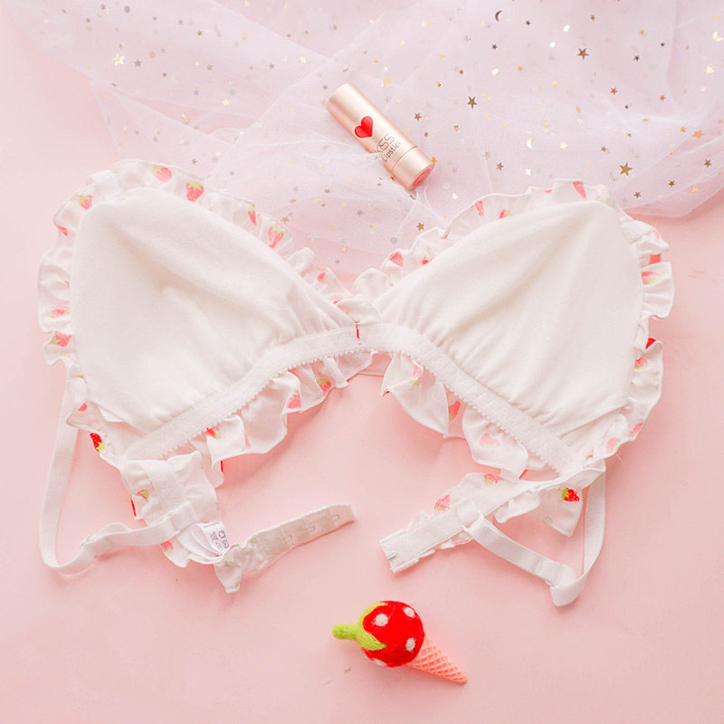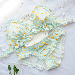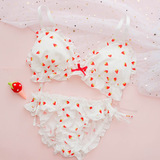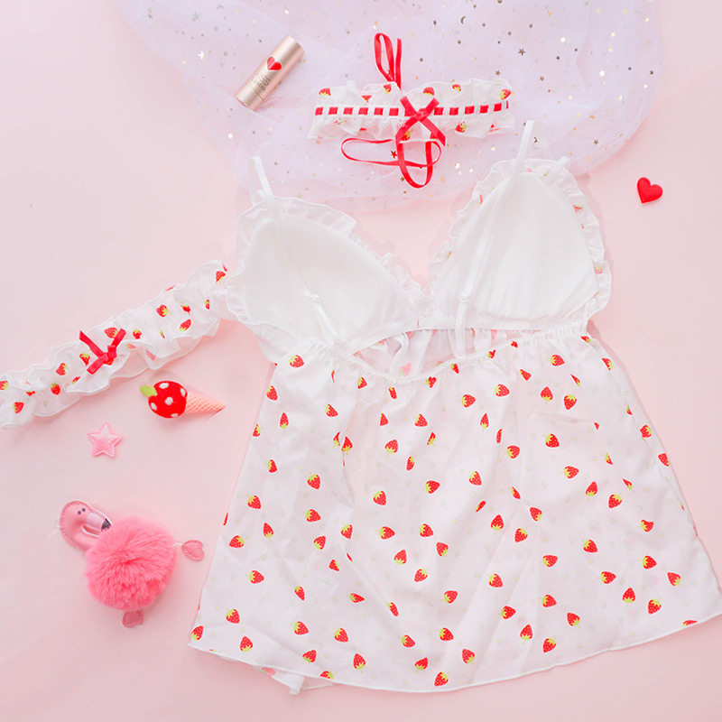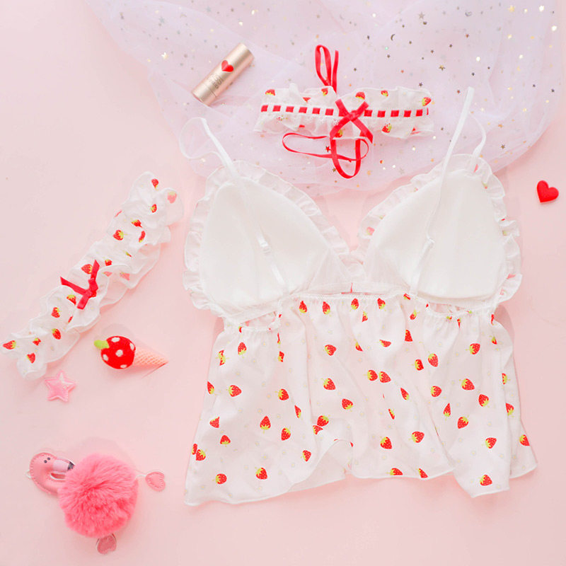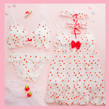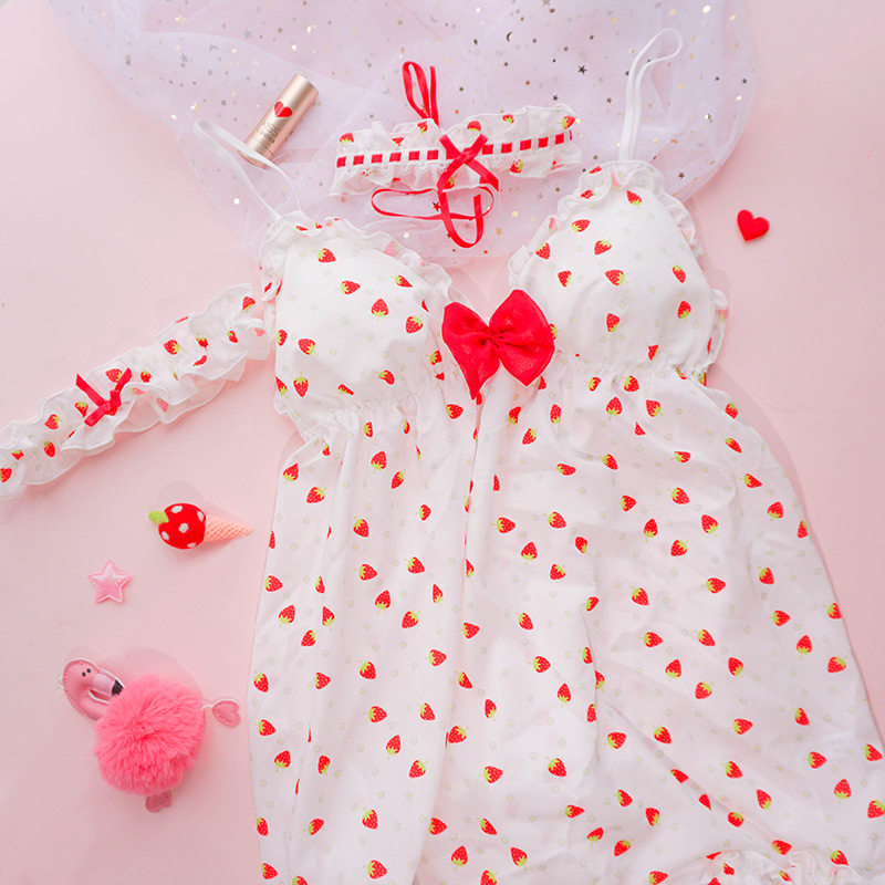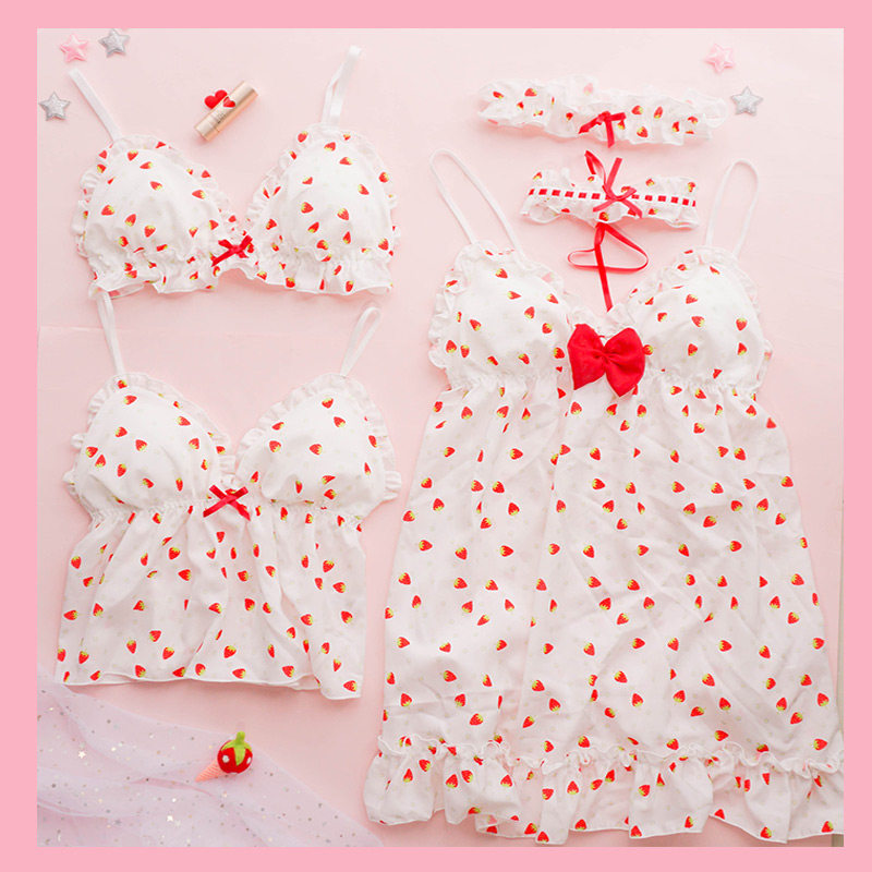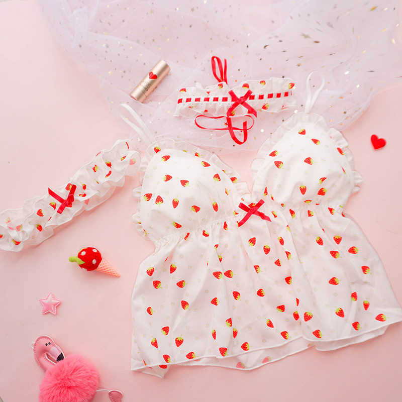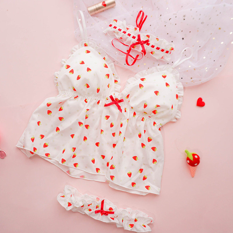 Чай Xiaoyu Симпатичное белье мягкая юбка комплект Японский бюстгальтер без Стальное кольцо шифон Зеленая клубничная пижамас
