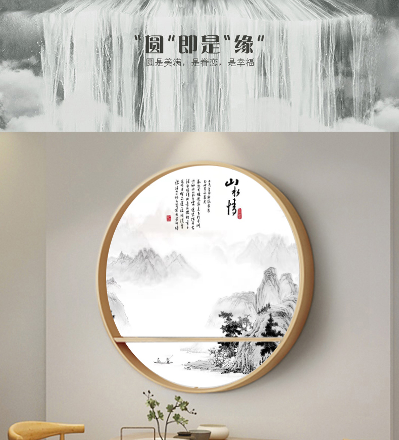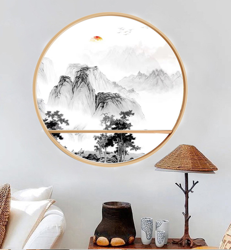 Новый Китайский стиль твердая древесина круглая стена висит гостиная диван фон стена прихожая проход декоративная роспись дзен живопись
