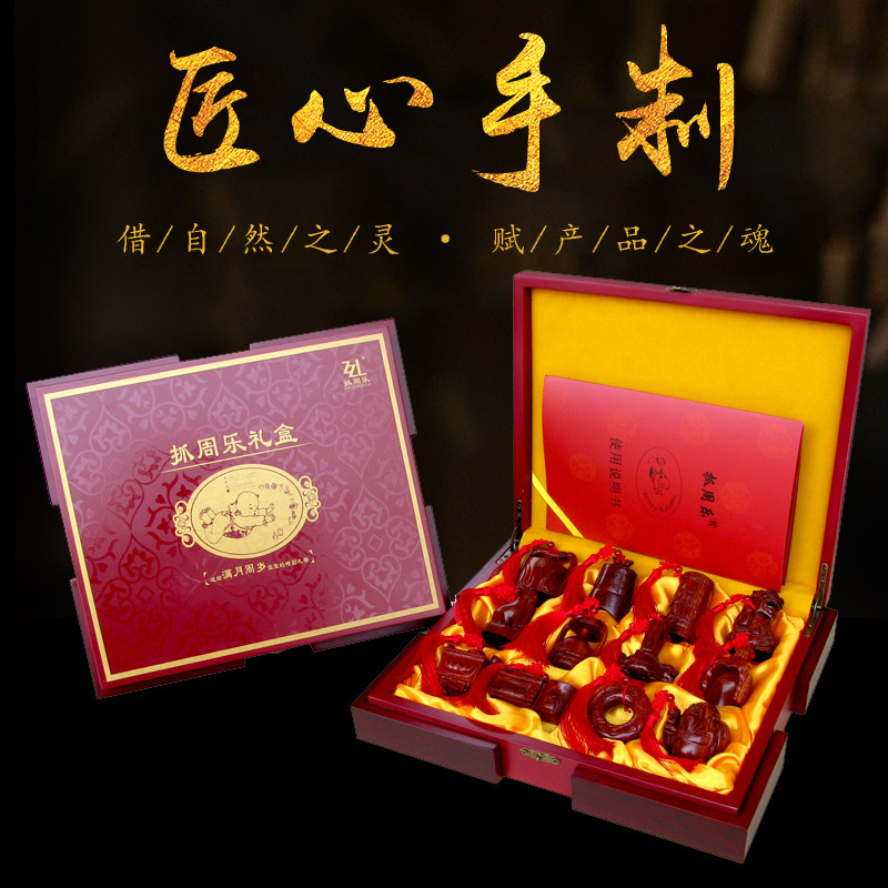 Один год детские Возьмите недельную вещь годовалой давности на младенца Буклет с игрушками на неделю красный Сандаловое дерево ручная работа Гравировка и ловля музыкальных открыток Чжоу