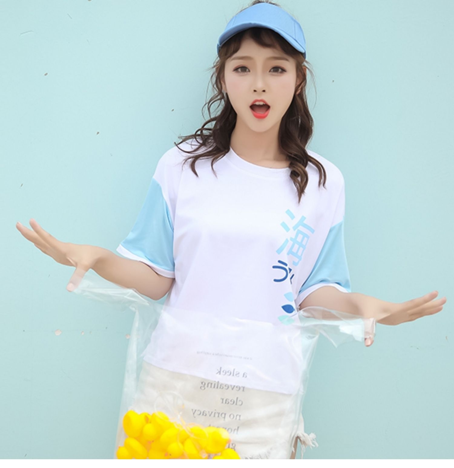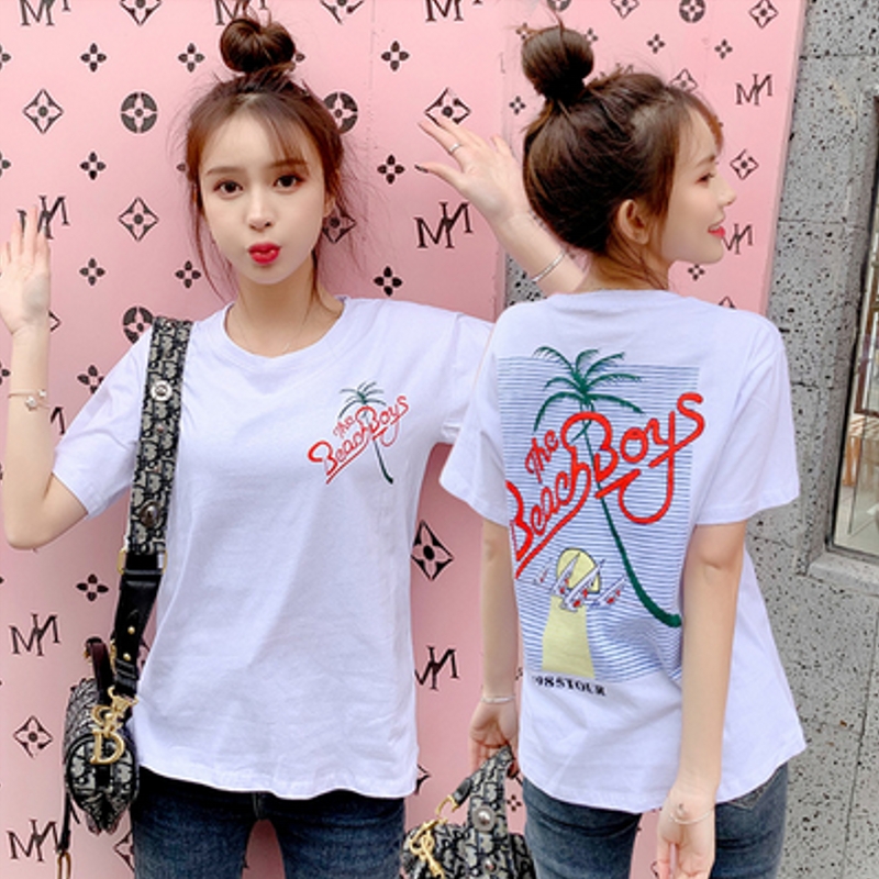 Половина рукава 2022 лето новая коллекция короткий рукав Футболка женская гавань корейская версия Студенческое летнее платье верх Одежда Ins Tide