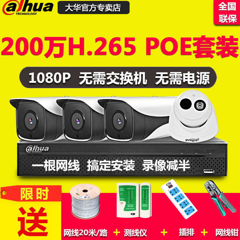 Оборудование монитора Dahua комплект 2 миллиона высокая Qing poe network. камера Домашнее хозяйство имеет Линия открытый ночное видение H265