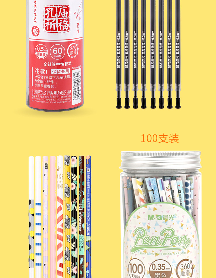 60 нейтральных ручек Ченгуанга черный 0.38mm полностью стрелка Молитесь за конфуцианский храм, молитесь за 100 экзаменов для 0,5 знака слово Водяная ручка 0,35 мм для основных студентов