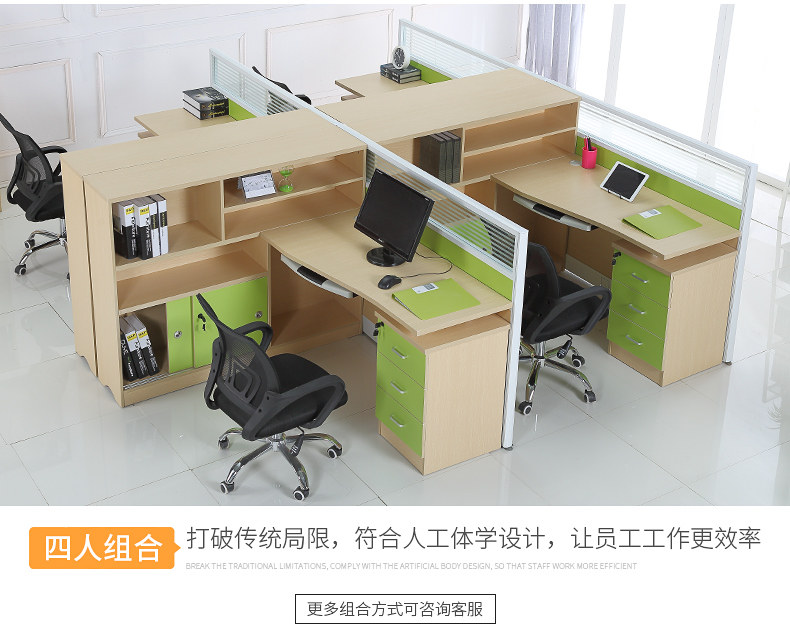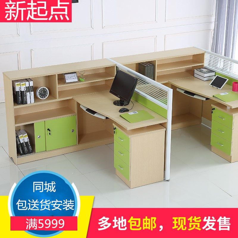 Стол с экраном для персонала 4 человека офисный слот для карт финансового офиса компьютерный стол и стул комбинированная мебель
