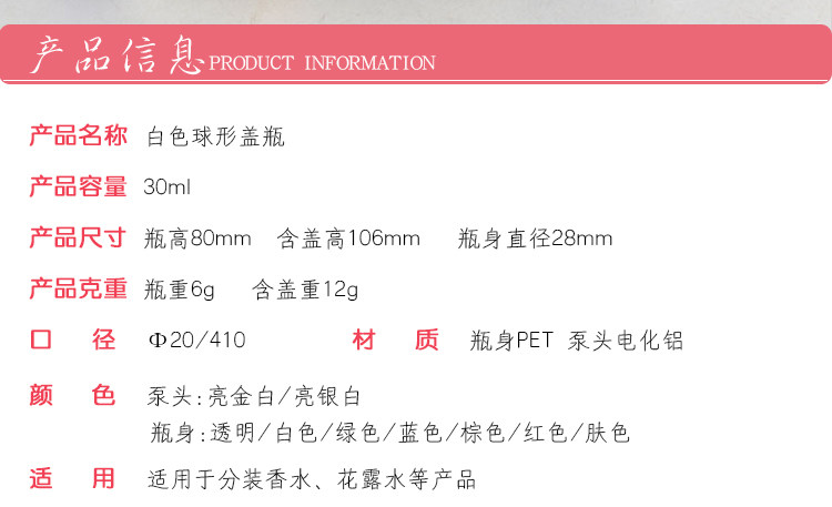 30 мл миллилитра пластиковой баллончики круглой бутылки с круглой электрификацией плеча алюминий Беспопродная головка пустого макияжа для бутылки для бутылки для питомца питомца пакет материал