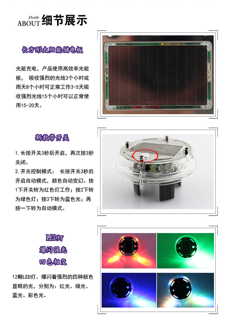Цвет: Солнечная трехцветная вспышка( цена за 1шт ), Солнечная трехцветная вспышка(Четыре цены), Солнечная энергия цветная Строб с дистанционным управлением( комплект цена)