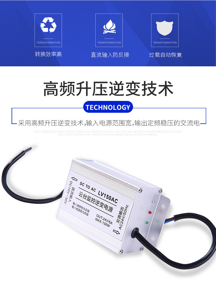 Этот продукт подходит для мониторинга рассунка энергии солнечной/ветровой энергии система , Может напрямую преобразовать DC 12V или 24 В в AC 24 В.Применение инвертора злится.