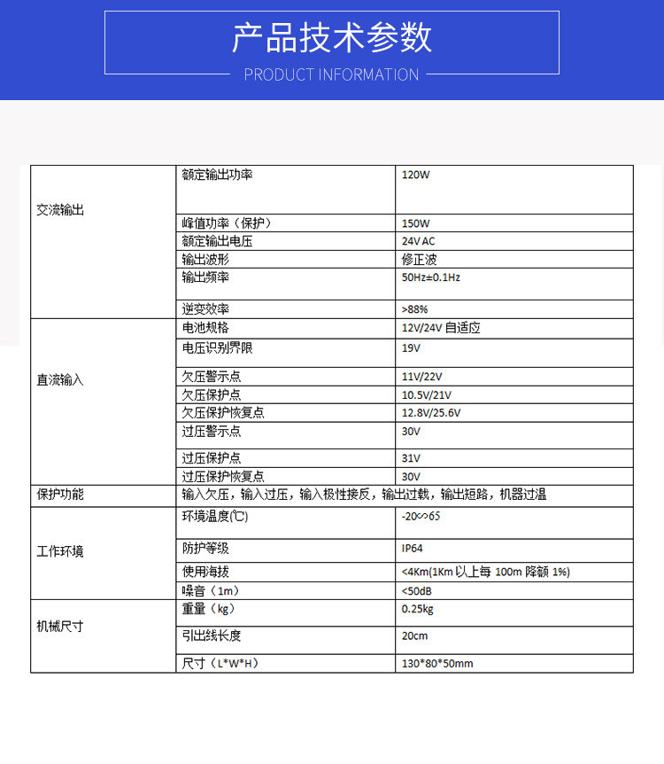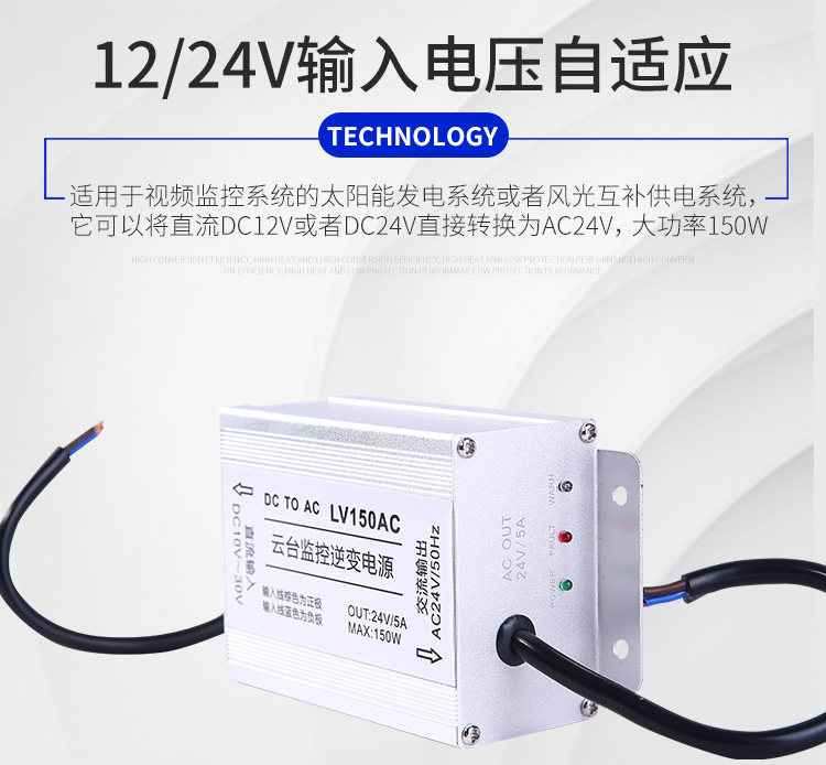это входное напряжение продукта адаптировано на 12/24 В, а выходная мощность составляет 150 Вт.