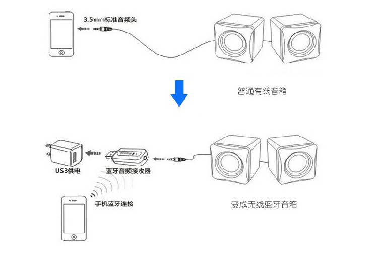 1.) один Функция: питание порта USB, получение синий Зубной сигнал превращается в вывод AUX на динамик; 2)Двойная функция: источник питания порта USB, выходной сигнал USB -порта US Function Function Funt частота из;