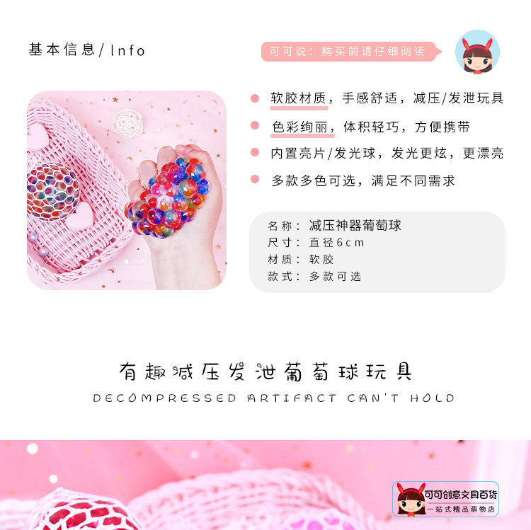 Креативный вентилируемый шар декомпрессия виноградный шар ущипнуть музыкальный шар игрушка кристалл цвет Артефакт декомпрессии жемчужный шар воды хитрый подарок