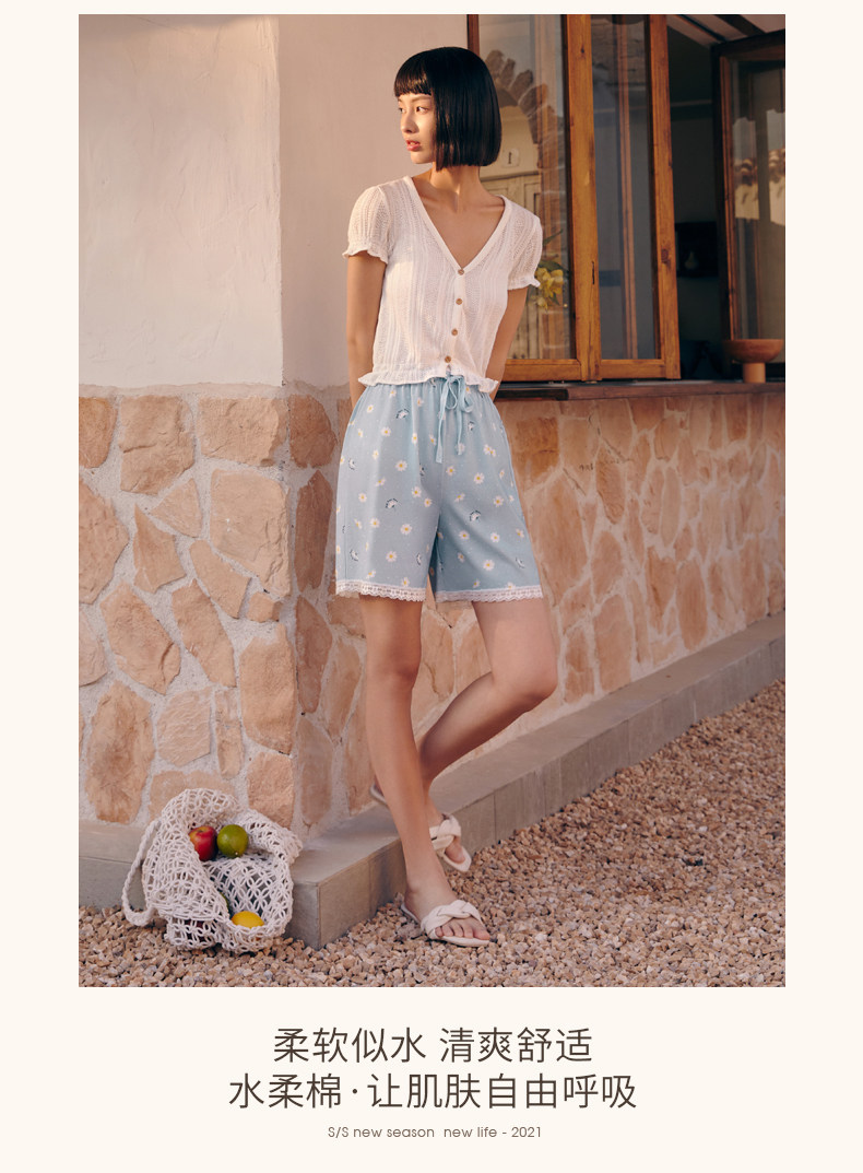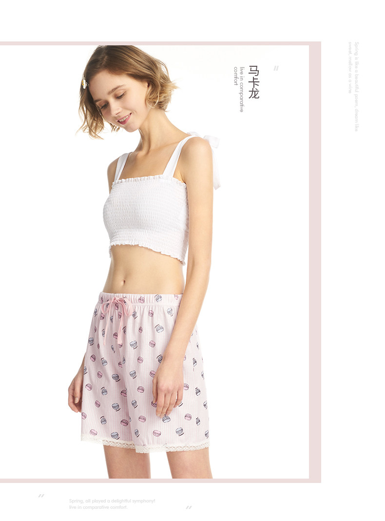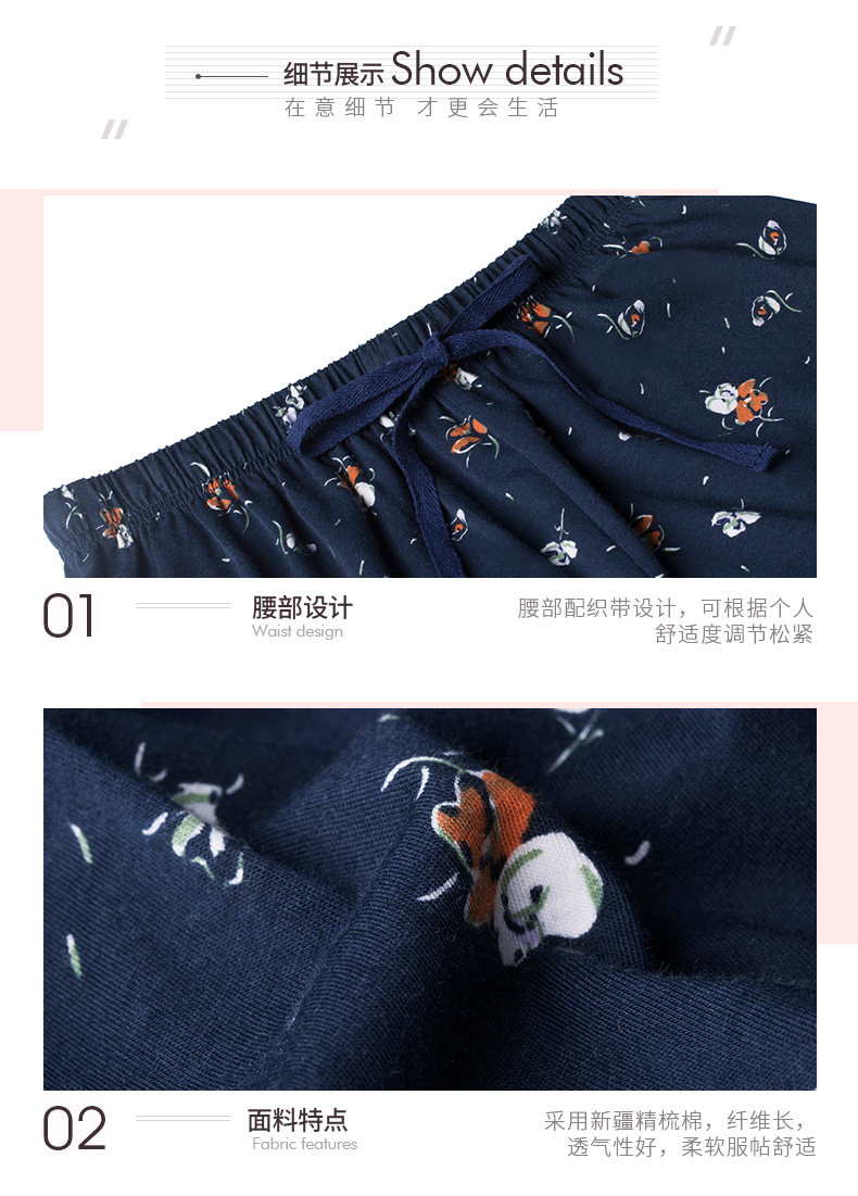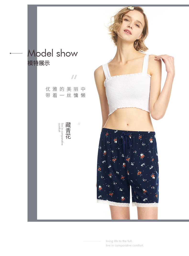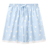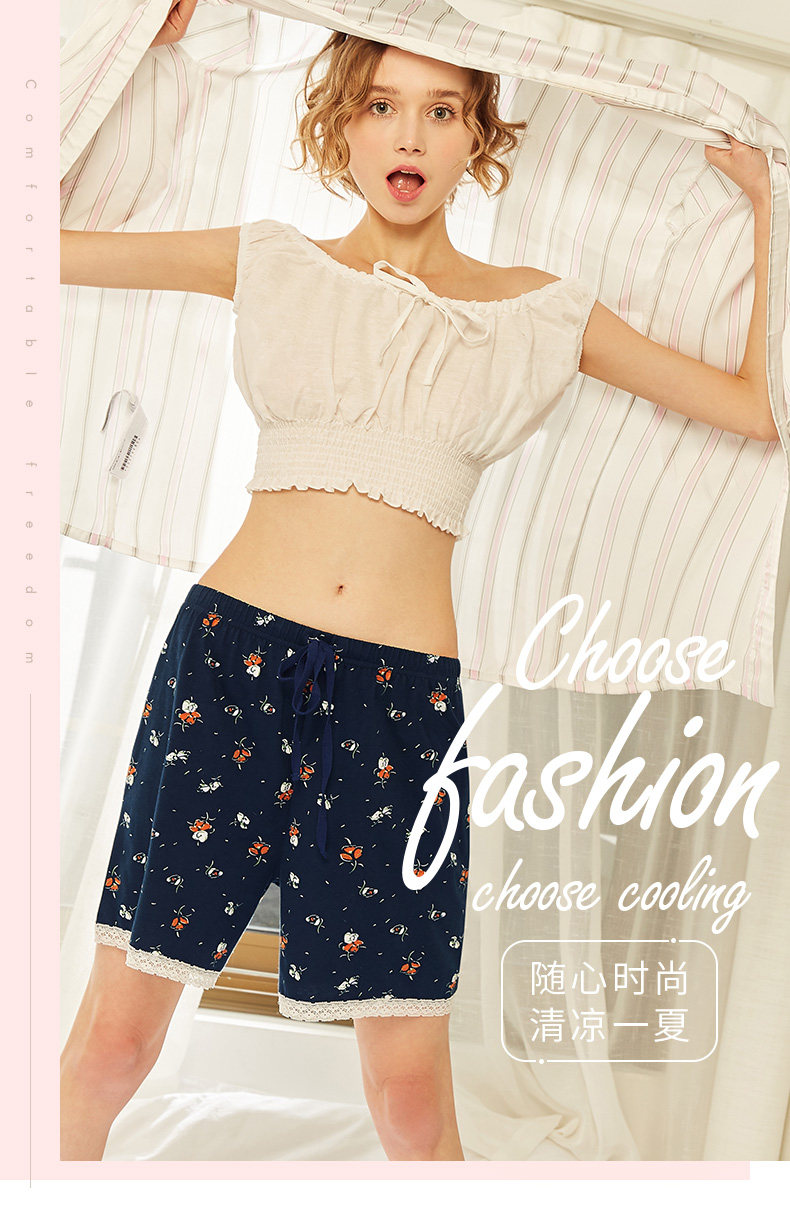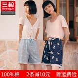 Три выстрела новый Четверть хлопок Домашнее задание чистый хлопок домашние лето новый Pajamas Print. со шнурками полностью хлопок женский Кружевные короткие спящие штаны