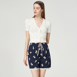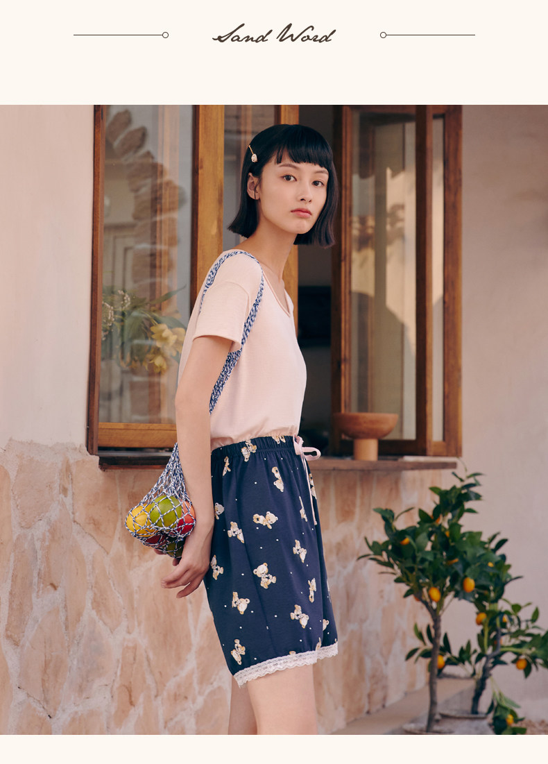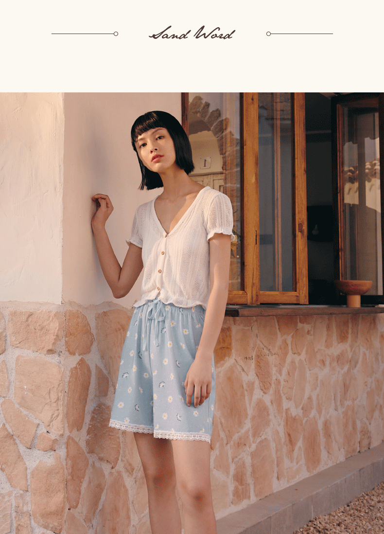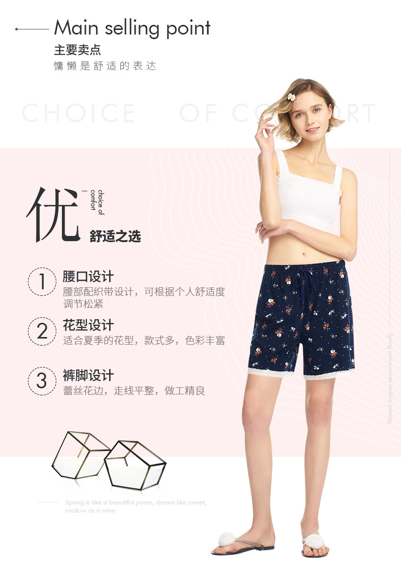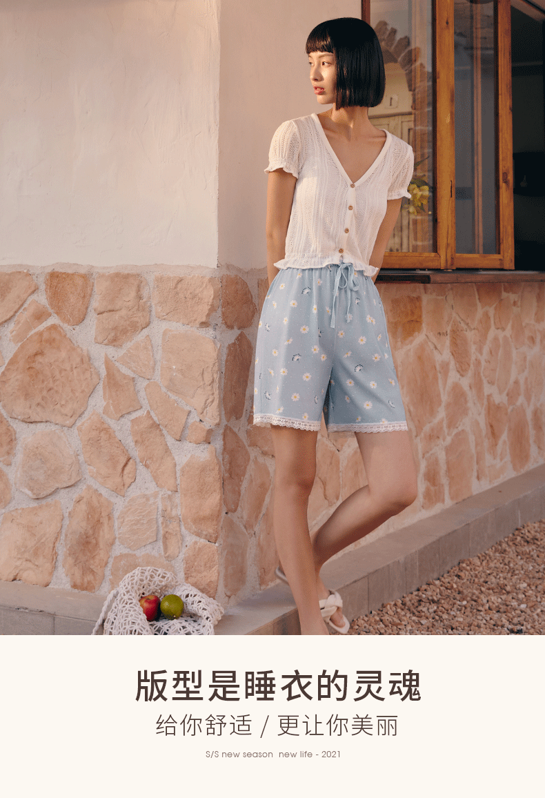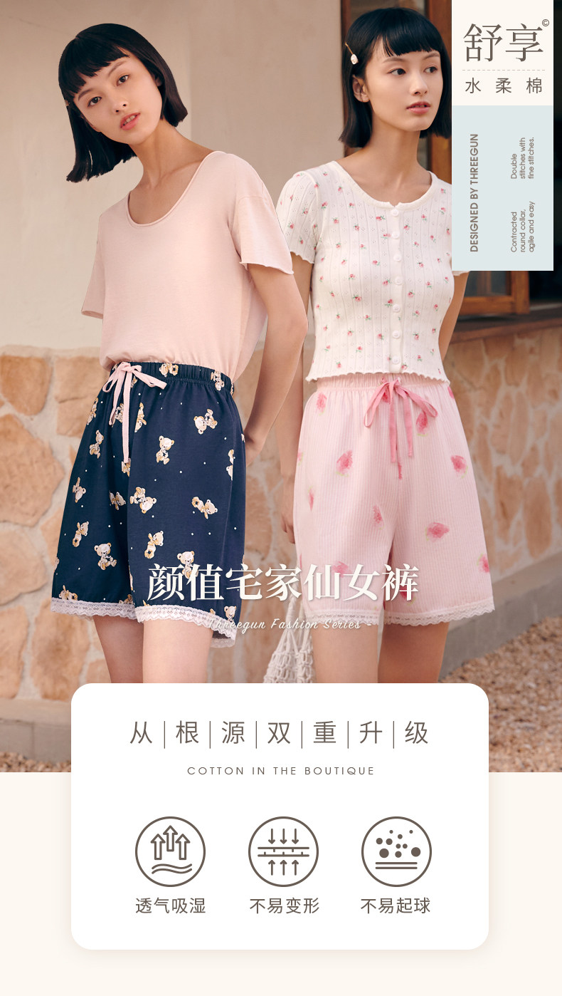 Три выстрела новый Четверть хлопок Домашнее задание чистый хлопок домашние лето новый Pajamas Print. со шнурками полностью хлопок женский Кружевные короткие спящие штаны